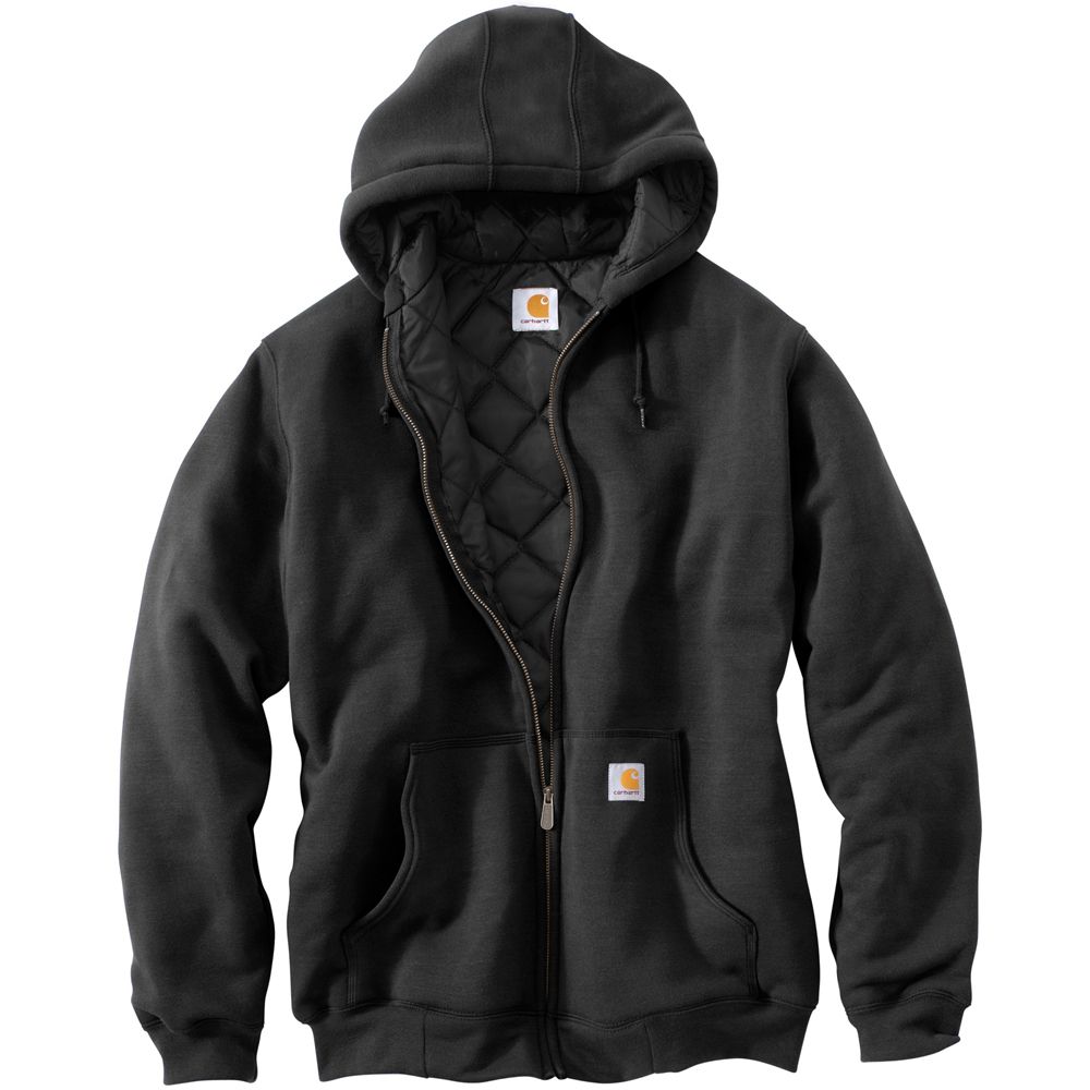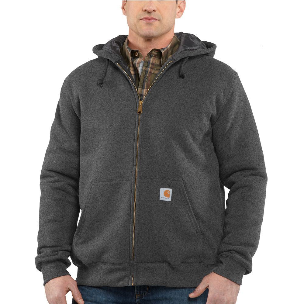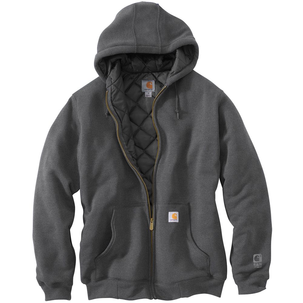 10.5-ounce, 50% cotton/50% polyester blend, Heather Gray fiber content is 70%cotton/30%polyester Quilt lining retains warmth Attached quilt lined three-piece hood with draw-cord closure Rain Defender durable water-repellent finish Two front hand-warmer pockets Interior cellphone pocket