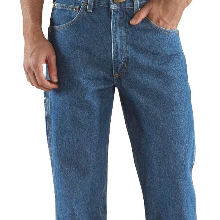 15-ounce, 100% cotton denim Triple-stitched main seam and reinforced back pockets Sits at the waist
