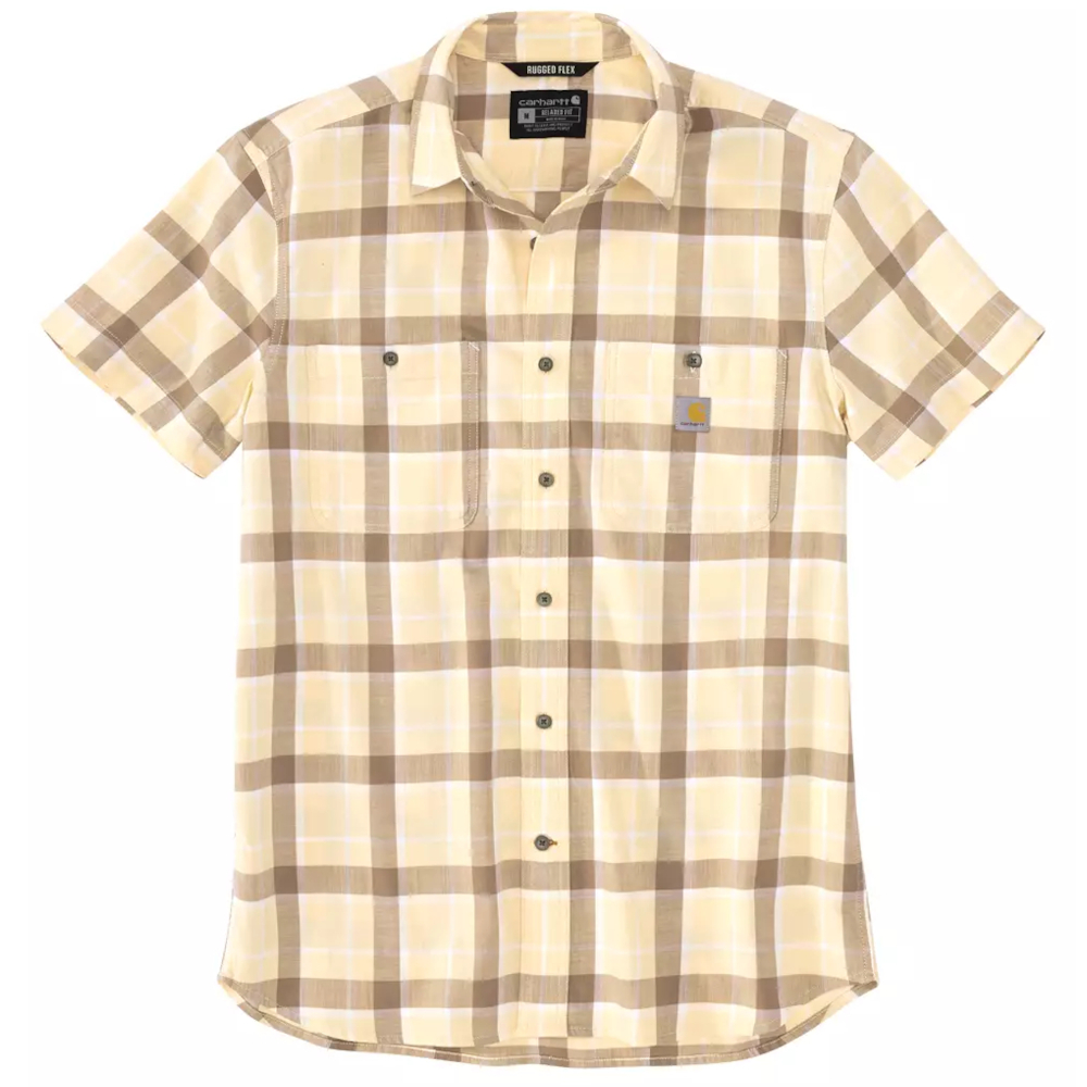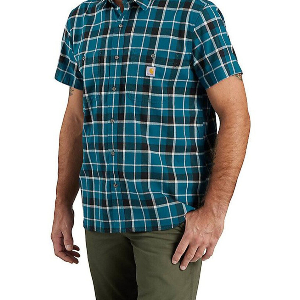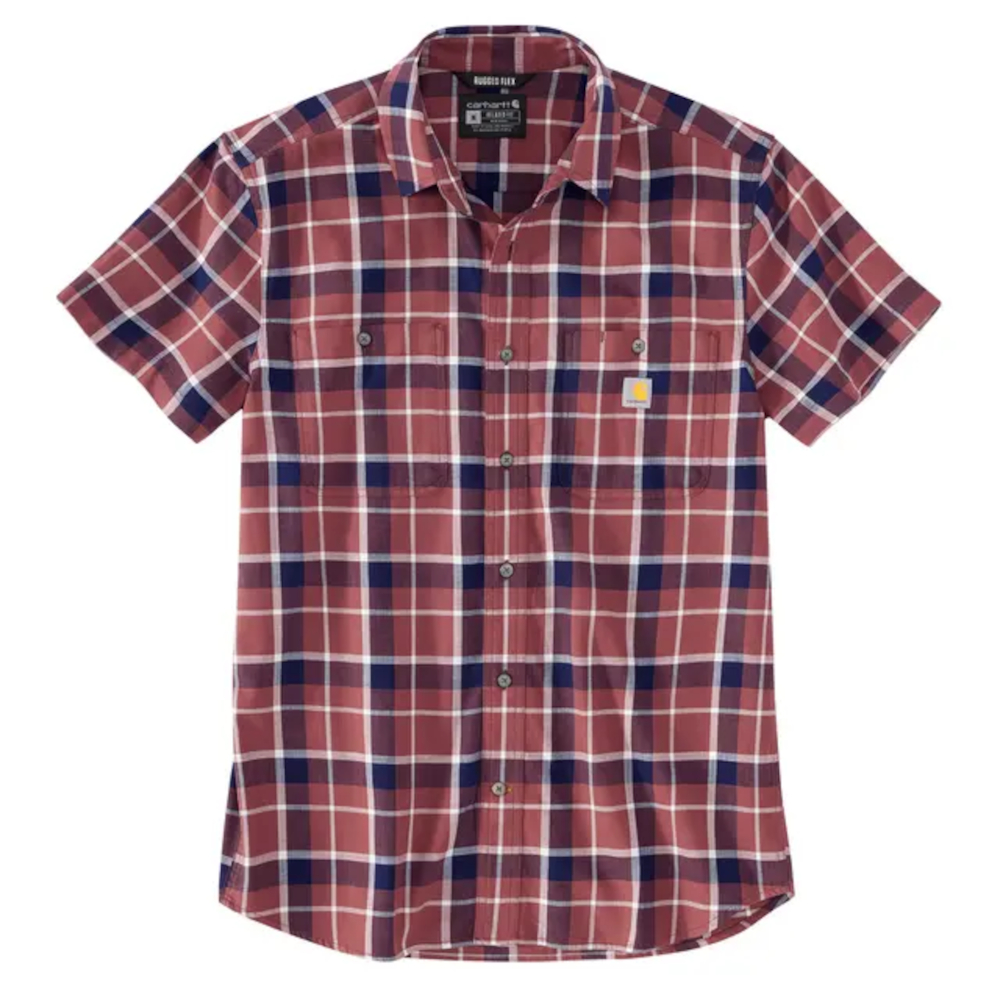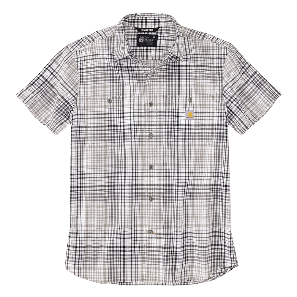 Whether you're measuring, wrapping up tasks, or unwinding after a demanding day, this men's short-sleeve, checkered shirt offers adaptability during work hours and beyond. Crafted from lightweight cotton, it incorporates Rugged Flex® technology for elasticity and effortless movement.