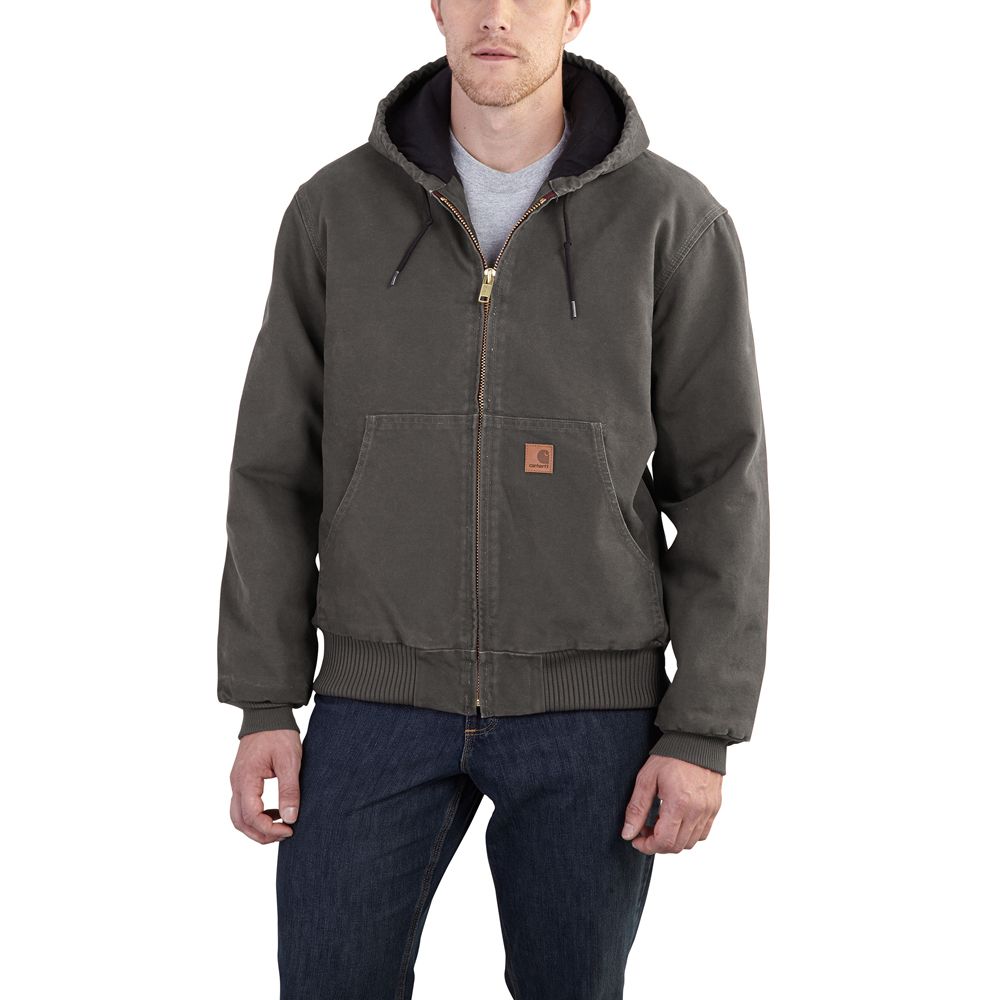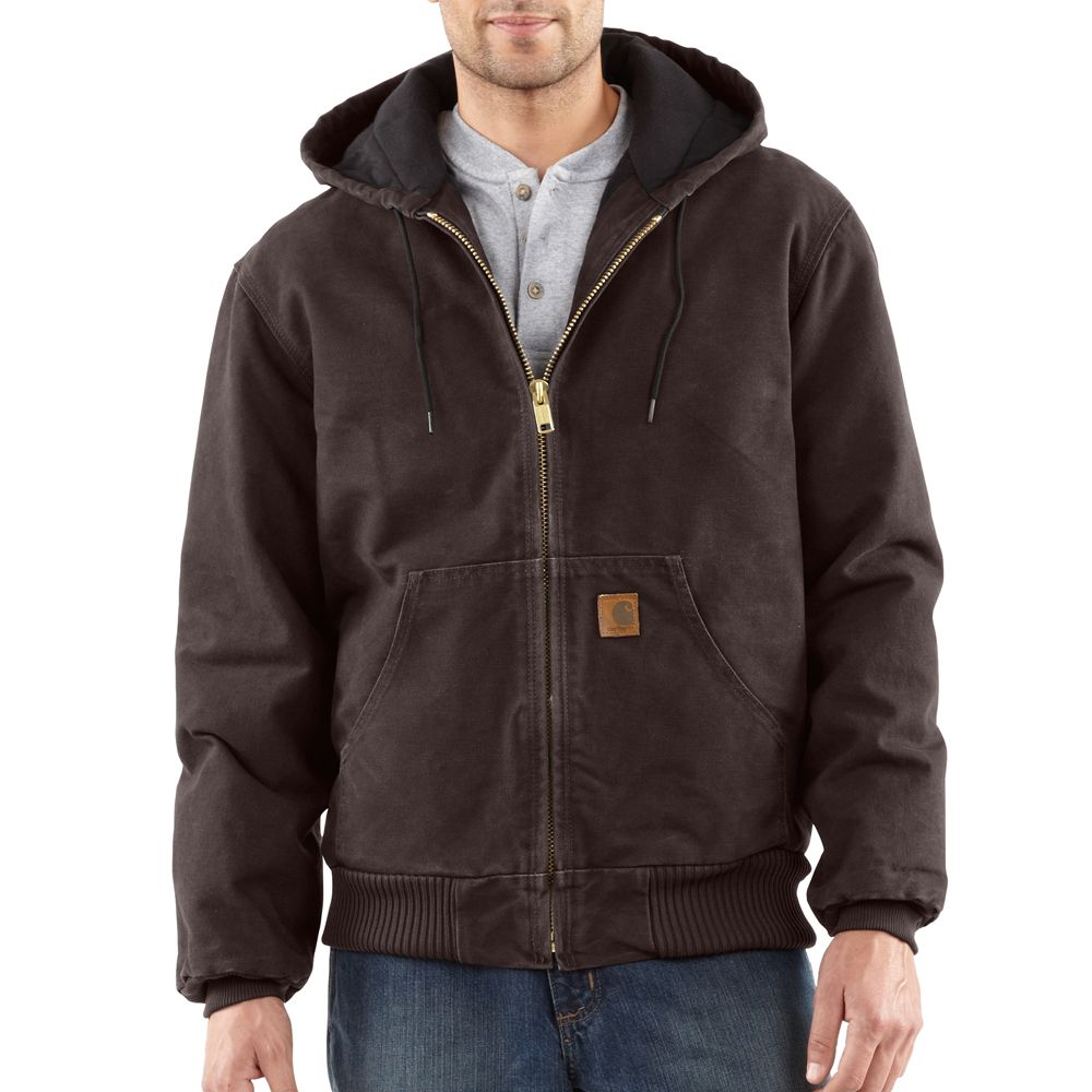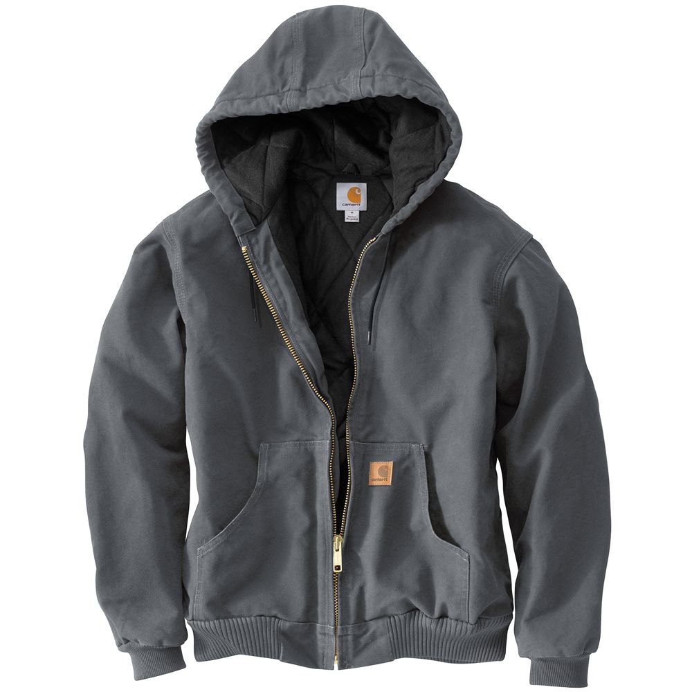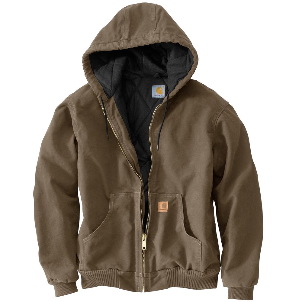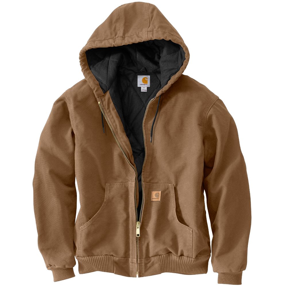 12-ounce, 100% cotton sandstone duck. Water repellent and Wind resistant. Quilted-flannel lining in body, Quilted-nylon lining in sleeves Attached quilted-flannel lined hood with draw-cord closure Two inside pockets Two large lower-front pockets Rib-knit cuffs and waistband