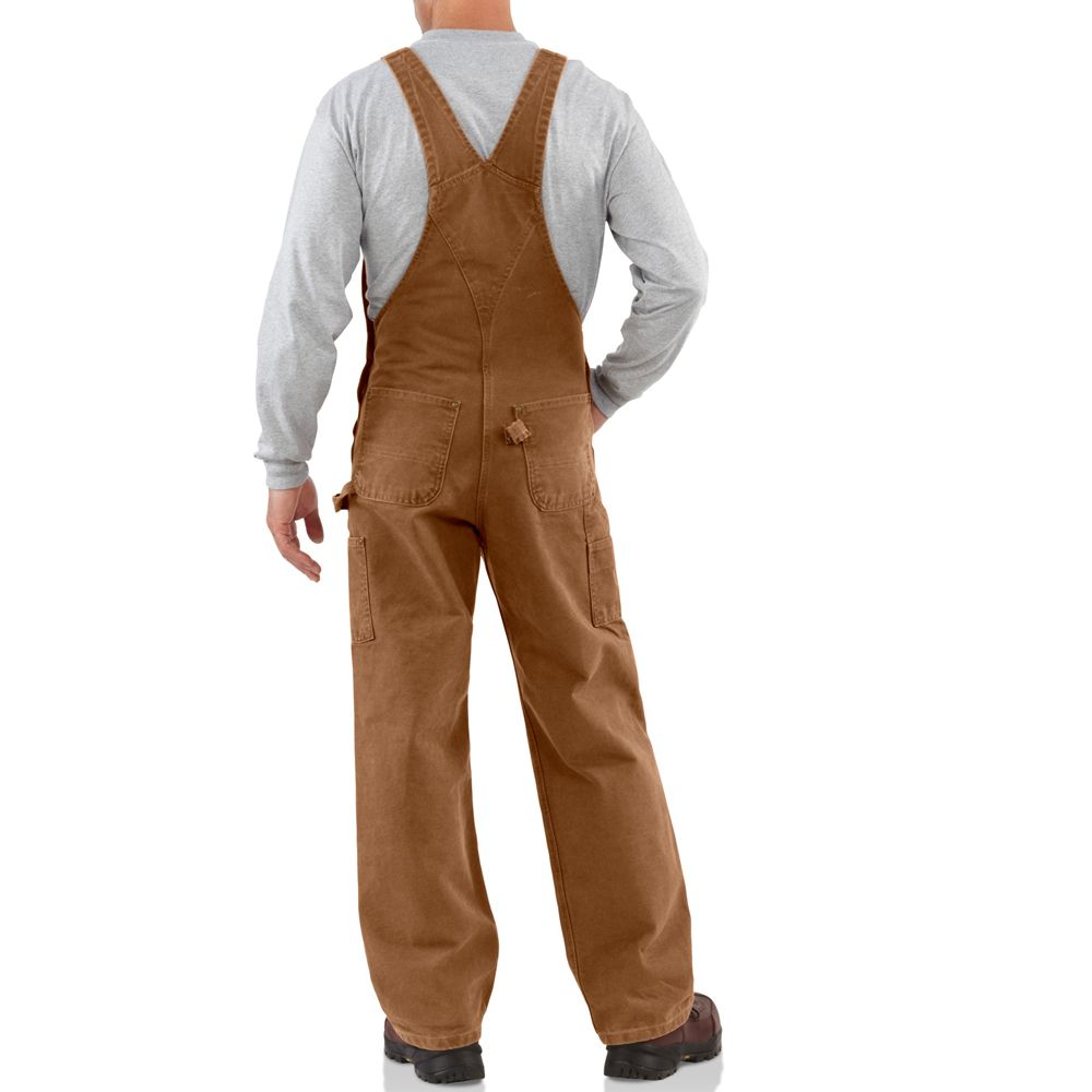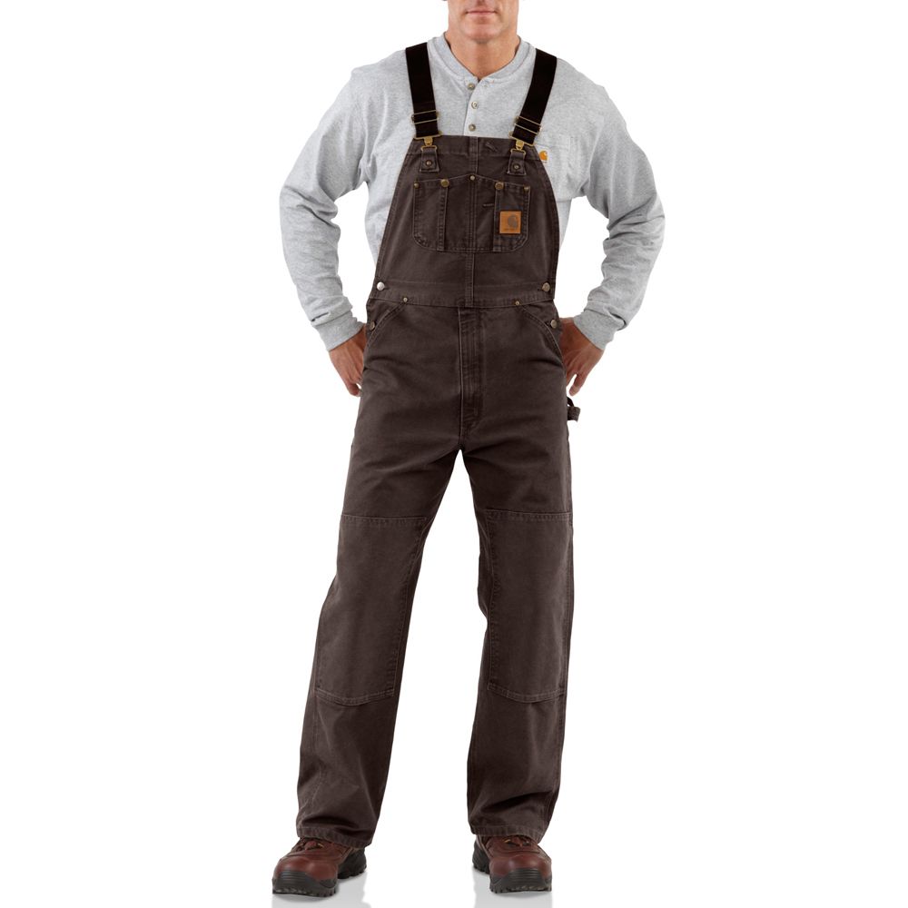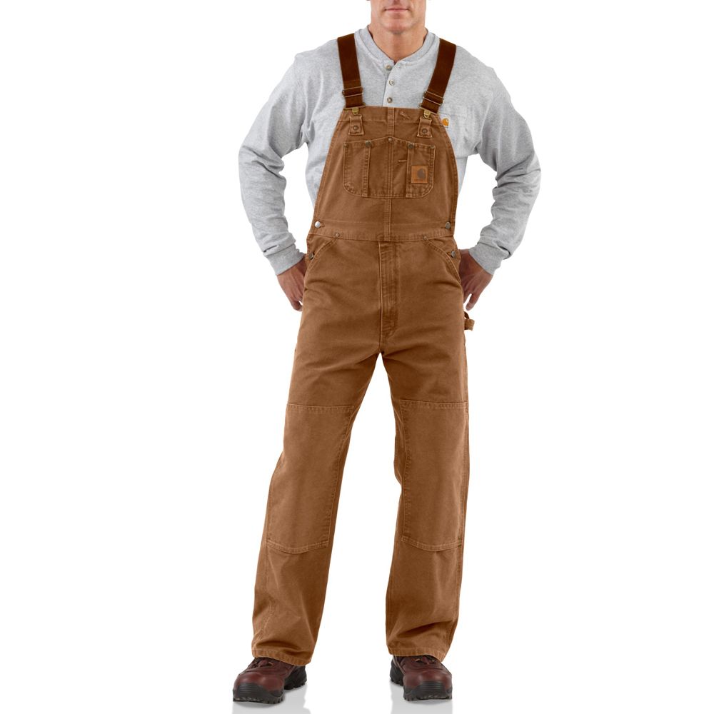 12-ounce, 100% cotton sandstone duck, heavyweight Unlined Double knees with cleanout bottoms that accommodate knee pads Multiple utility and tool pockets Hammer loop and brush loop Back pockets are reinforced for durability