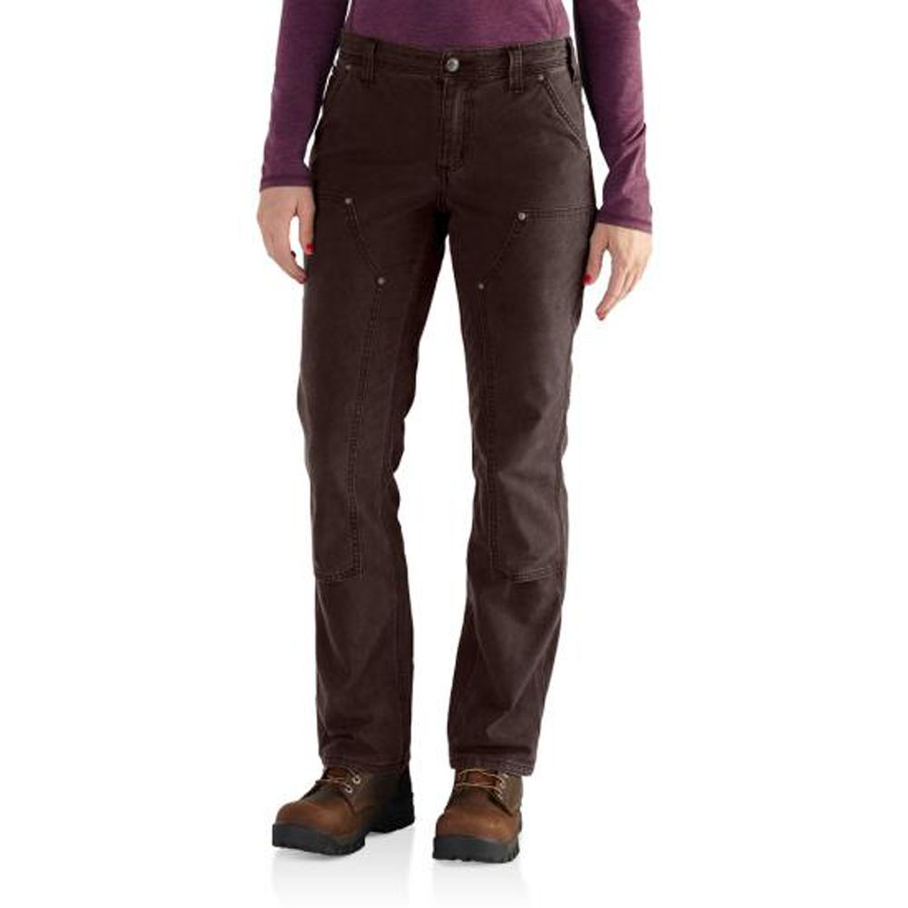 Durable, midweight, 8-ounce cotton canvas with the perfect amount of stretch Rain Defender durable water repellent resists rain, mist & snow Contoured waistband prevents gapping in the back Double-front construction with cleanout bottom for extra durabilityUtility pockets and hammer loop to make your work day easier