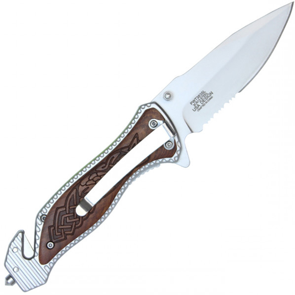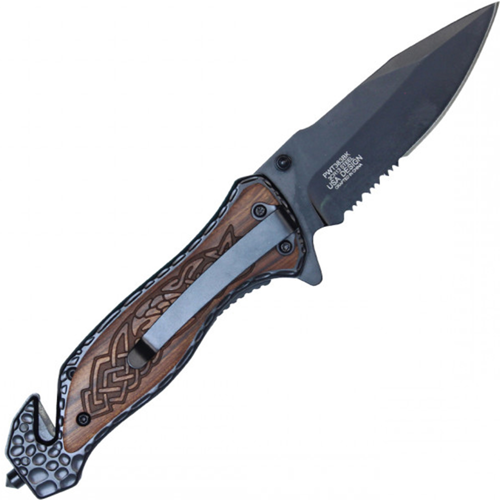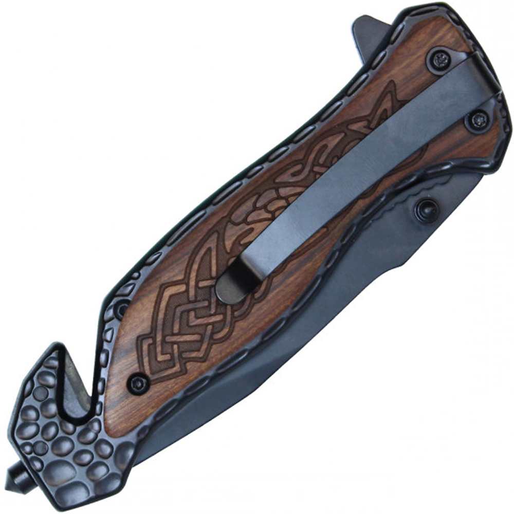 Introducing our 8 Stainless Steel Assisted Pocket Knife, a blend of style and functionality. Featuring a sleek stainless steel blade with a serrated edge for versatile cutting. The Celtic patterned handle adds a touch of elegance and grip. Elevate your everyday carry with this reliable and visually striking knife.