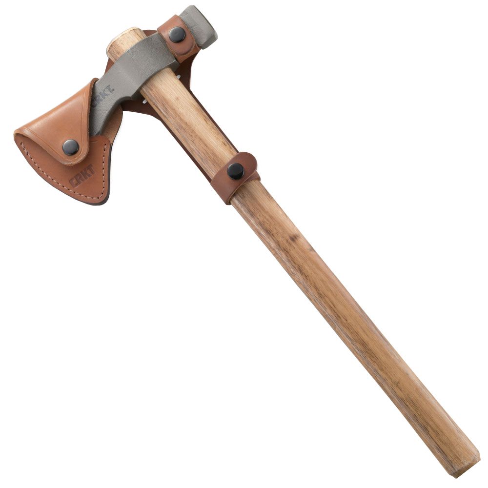 The leather on this sheath is 6/7 oz. full-grained leather that is heavy duty and hand crafted in Oregon, USA. The leather is vegetable tanned and will not corrode metal. It has a hand oiled finish for durability and the seams are locked stitched with heavy weight nylon thread. The sheath protects the axe head and fits snugly and securely with three snaps. The belt loop fits belts with widths up to 1 ¾ inches.