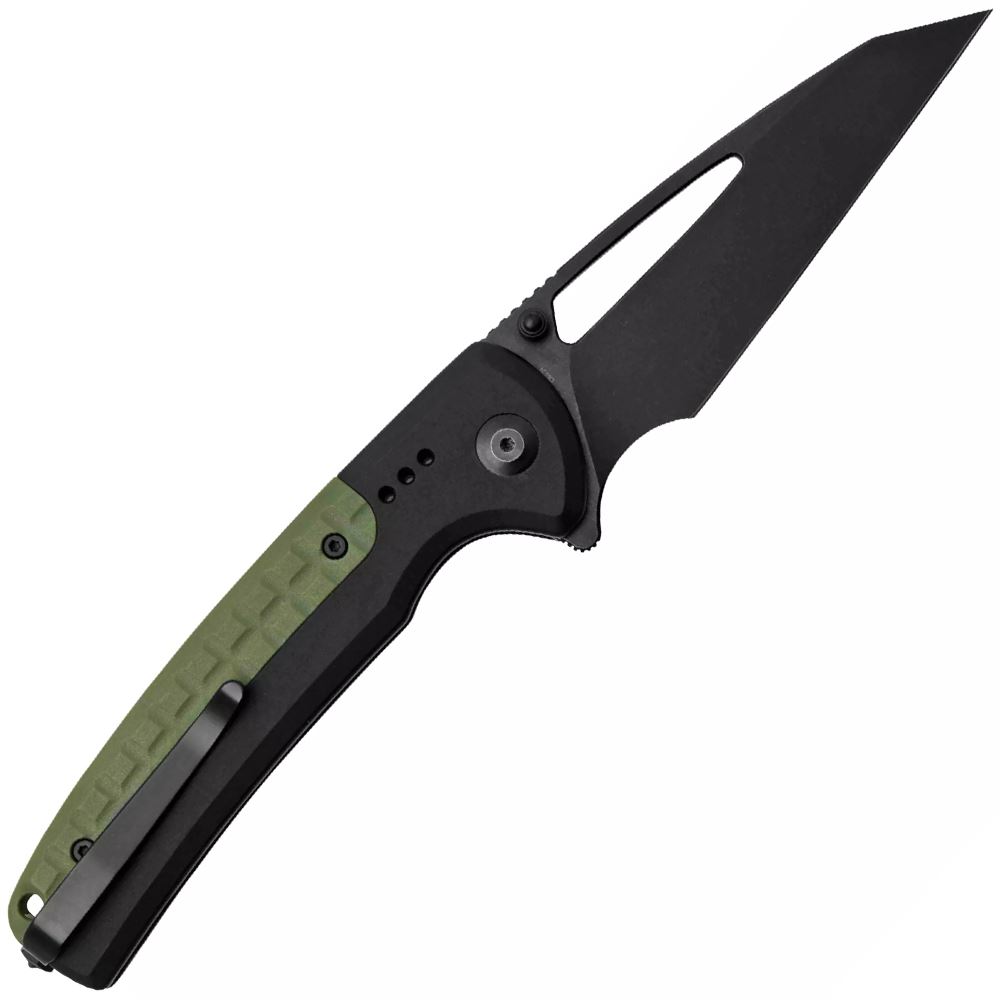Precision meets reliability in the Sentinel Strike, a folding knife tailored for demanding tasks and everyday use. Its reverse tanto blade, made from durable K110 steel with a sleek black finish, offers excellent cutting performance and resistance to wear. The flat grind enhances slicing capability, while the sturdy aluminum handle ensures a secure and comfortable grip.
