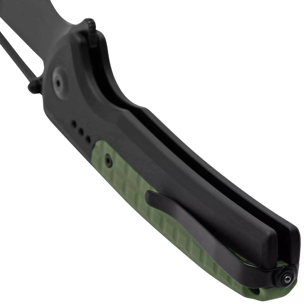 Equipped with a glass breaker tip and an integral FRN backspacer in OD green, this knife offers versatility beyond cutting tasks. The button lock mechanism is thoughtfully designed to provide just the right resistance, ensuring safety and smooth operation. Ideal for those who value practicality and efficiency, the Sentinel Strike is a dependable companion for any situation.