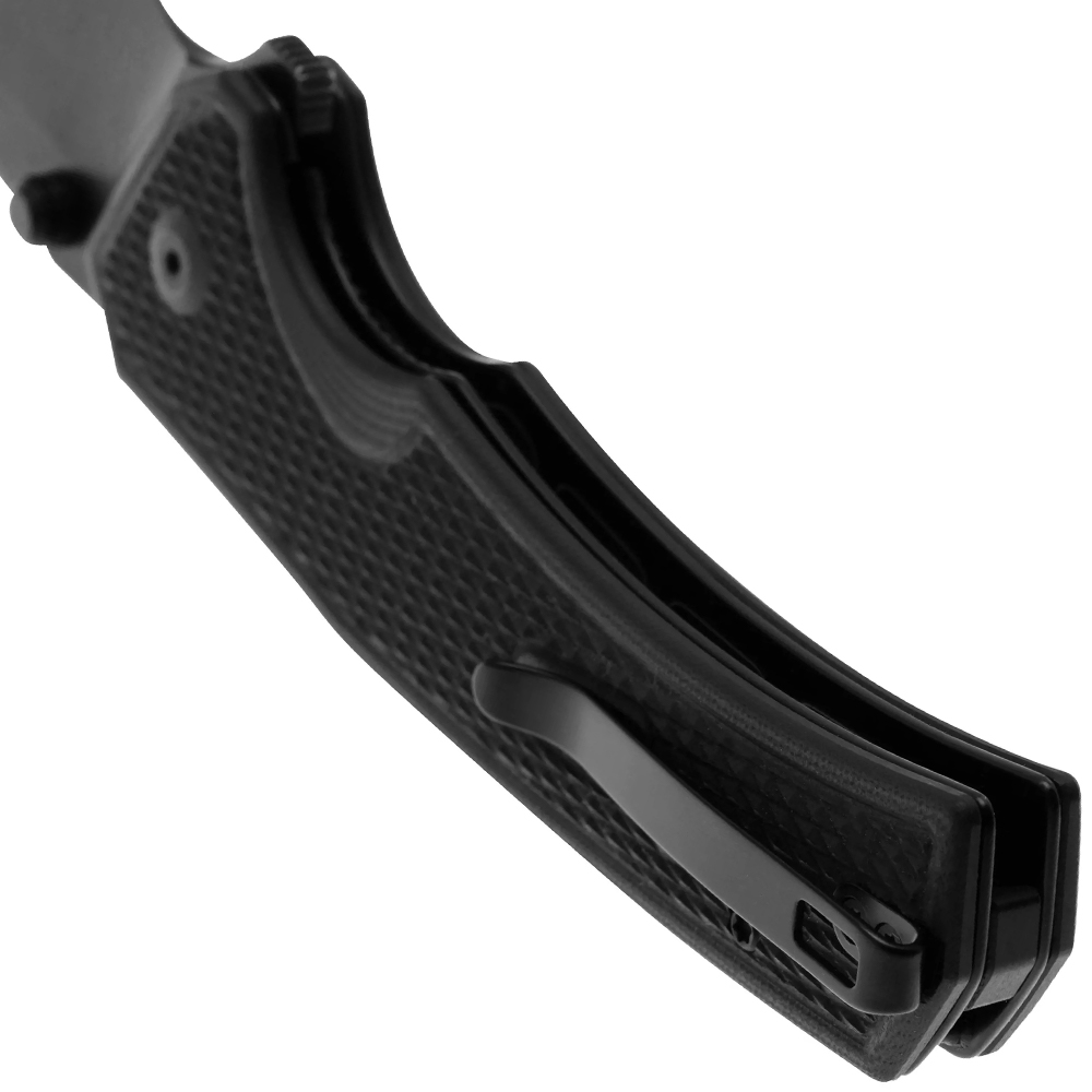 The Vexillum stands out as a reliable folding knife designed for those who value durability and performance. Its thoughtfully engineered Nitro-V clip-point blade, featuring a black stonewashed finish, ensures excellent edge retention and versatility for various cutting tasks. The handle, crafted from G10, is not only lightweight but also ergonomically contoured for comfort, making it suitable for extended use.