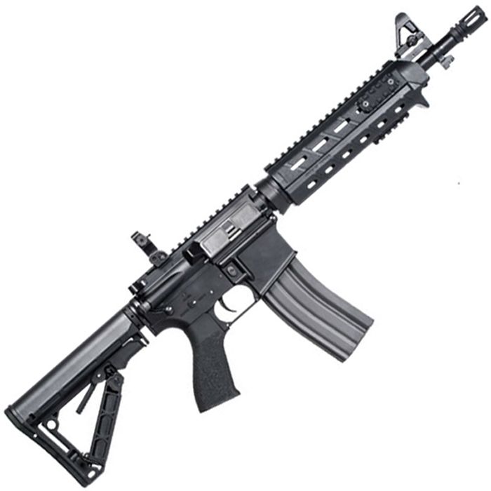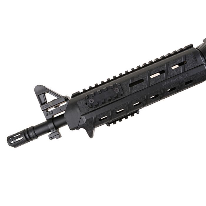 Made of G&G's famous polymer, the CM16 MOD0 Rifle is incredibly lightweight and maneuverable. This high-powered AEG is great for both beginners and more experienced airsoft players. It features an ergonomic handguard, collapsible stock, a fully upgradeable metal V2 gearbox, and a removable flip up rear sight. The high-capacity magazine holds 450 rounds of 6mm airsoft BBs. This tactical black model is perfect for covert operations. Batteries and charger not included.