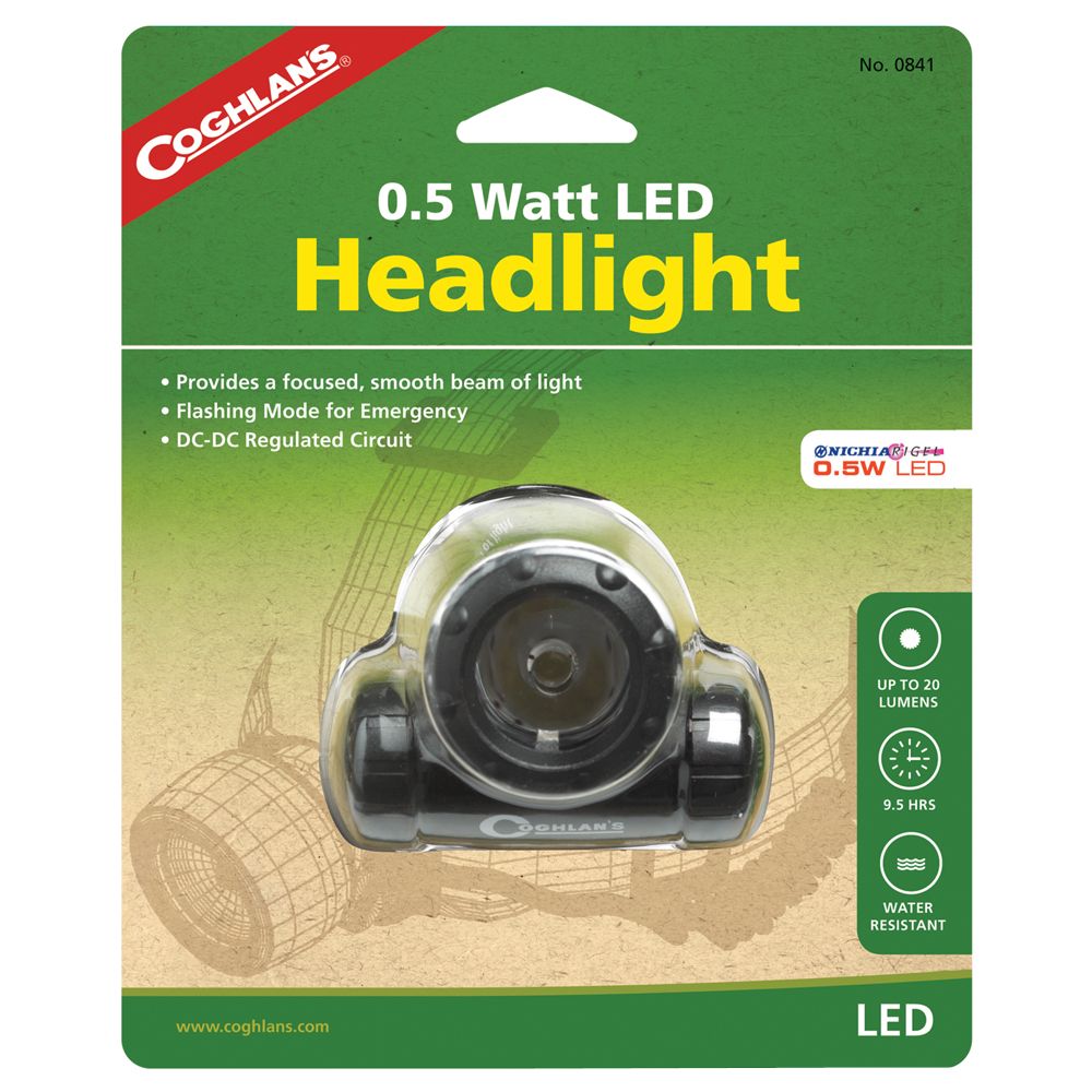 Powerful NichiaTM 0.5W LED light provides a focused and clean beam of light. Adjustable inclination and head strap. DC-DC regulator maintains maximum light output throughout the entire battery charge. Water Resistant. Batteries included.