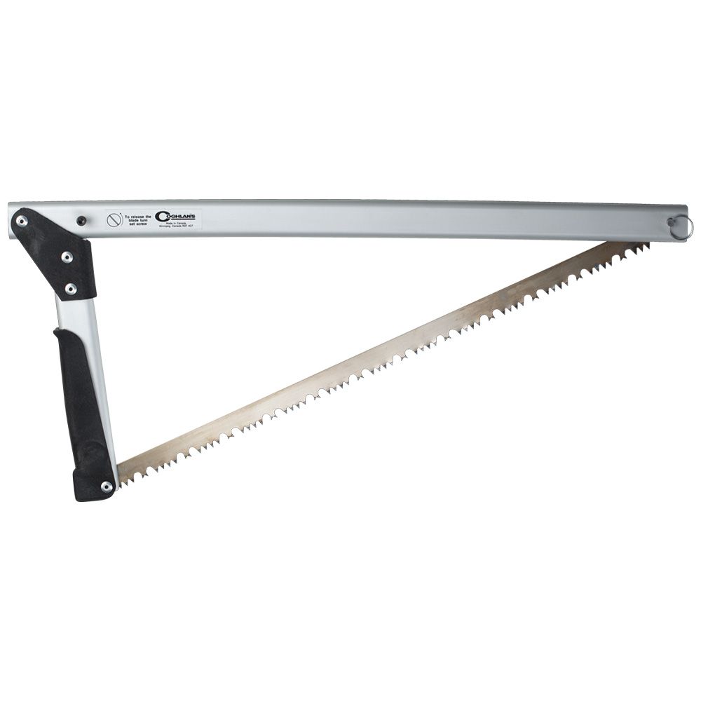 Rugged anodized aluminum frame holds extra blades and is safe and compact. Standard 21” (53.3 cm) wood, meat or metal cutting blade can be added.