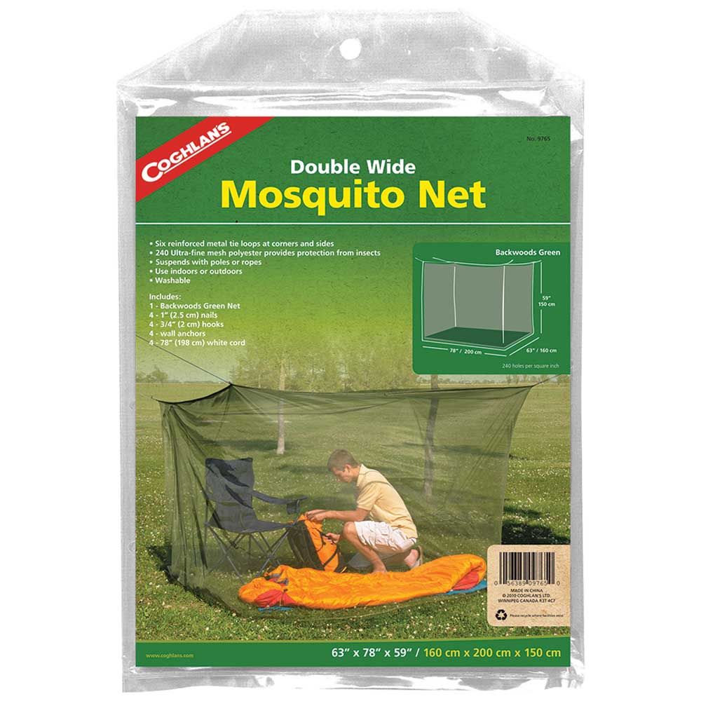 Fits over two cots or bags, suspends with poles or ropes (not included) Made from an ultra-fine 240 polyester mesh. Rectangular shape with six reinforced tie tabs.