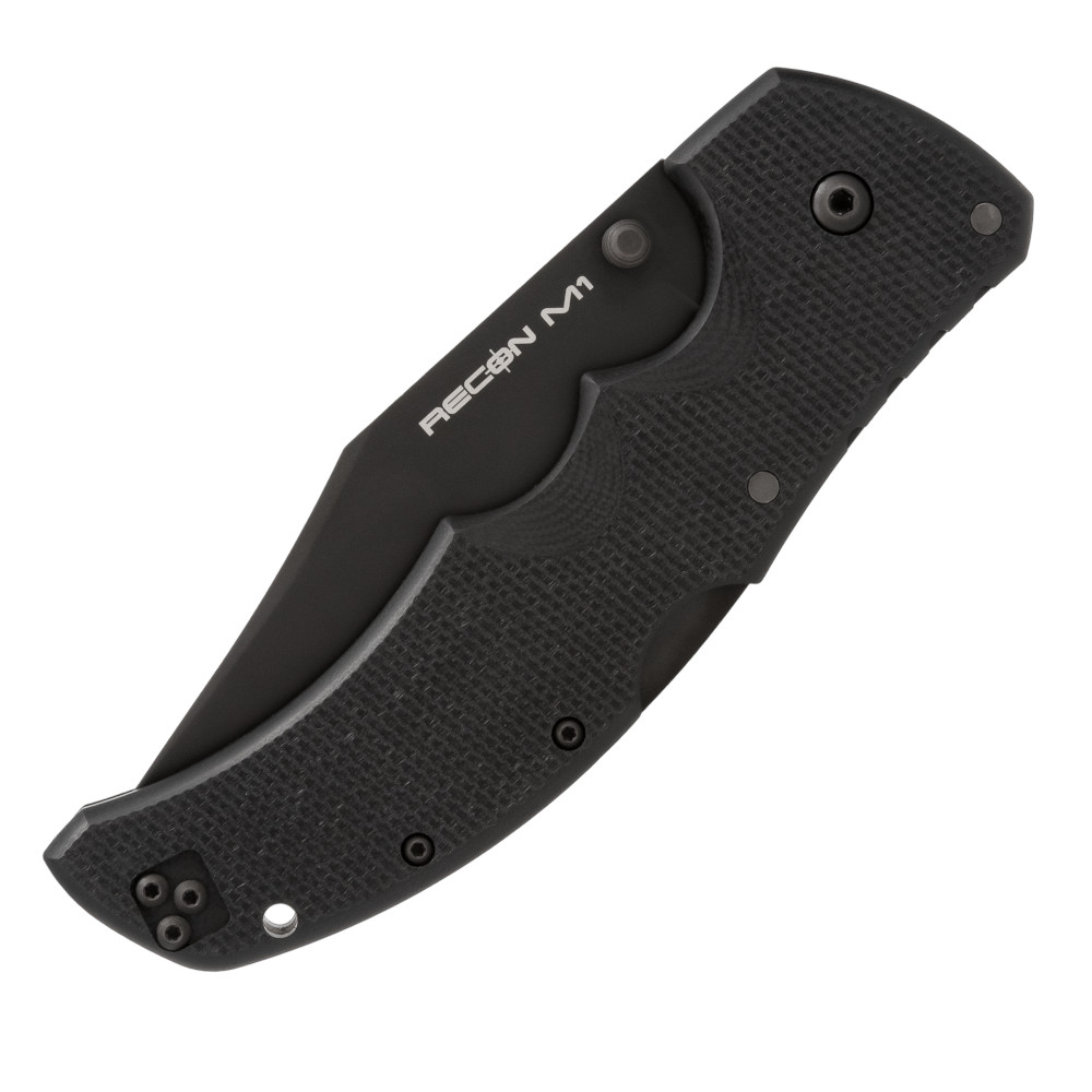 Discover the ultimate tactical tool: the Cold Steel Recon M1. Boasting a rugged 4" (10.16 cm) CPM Magnacut stainless steel blade, this knife redefines industry standards for strength and performance. Cold Steel's reputation for creating resilient, high-performance blades is evident in the Recon M1. With its black stonewashed, vacuum heat-treated, and sub-zero quenched blade, it's engineered to perform under the harshest conditions. The G10 laminate scales ensure a secure grip, backed by high-strength fasteners and a 6061 heat-treated spacer.