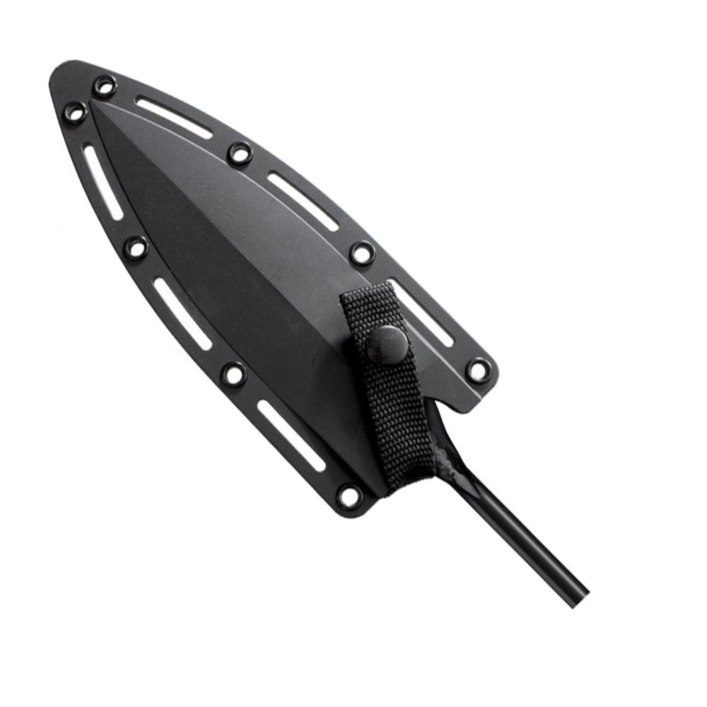 The Samburu tribe who inhabit Kenya's rugged northern frontier are a tall, lean people who eke out a living as semi-nomadic herders of sheep, goats, donkeys, camels and cattle. The warriors of the tribe known as "Lmurran" are particularly impressive, as they never cut their long braided hair and decorate their faces and torsos in beautifully intricate patterns using a cosmetic mixture made from animal fat and red ochre. Since their flocks and herds are constantly menaced by predators and subject to raids by lawless "Shiftas" (bandits) from Somalia, they seldom venture outside their "Kraals" (a kind of makeshift hut) without being thoroughly armed. In fact, no warrior worthy of his name would think of being caught without his spears. You see, the Samburu warrior's seven foot long throwing spear is the most advanced, state of the art spear of its type on the planet. With this extraordinary spear, warriors routinely dispatch marauding leopards, lions and even firearm toting bandits at unheard of distances. Each of our Samburu spears break down into three components: The first is the spear head itself, permanently welded to a thick steel shaft. Second is the counter balancing butt spike also known as the shoe. This is used as an alternative point for practice throwing, preserving the actual spear blade itself for more serious work. Third is the black, hardwood handle with a double taper connecting the head and shoe. The Samburu spears come unassembled for ease of transportation. All you have to do is fit the blade and butt spike tightly to the handle and attach them with the provided retaining screws. They come complete with a Secure-Ex® sheath. These spears could be described as the 300 Winchester Magnum of the spear world. They can be used at long range, fly straight, have a flat trajectory, hit hard and penetrate deep. Like the 300 Win Mag, they can be used to take any animal in North America. NOTE: We've made our Samburu spears as tough as possible. However, if you bend your spear shaft or "shoe" (butt spike), it can be easily straightened in a vise or with a hammer, and the tough hickory handle of your spear can eventually break, so please be prepared to replace it.
