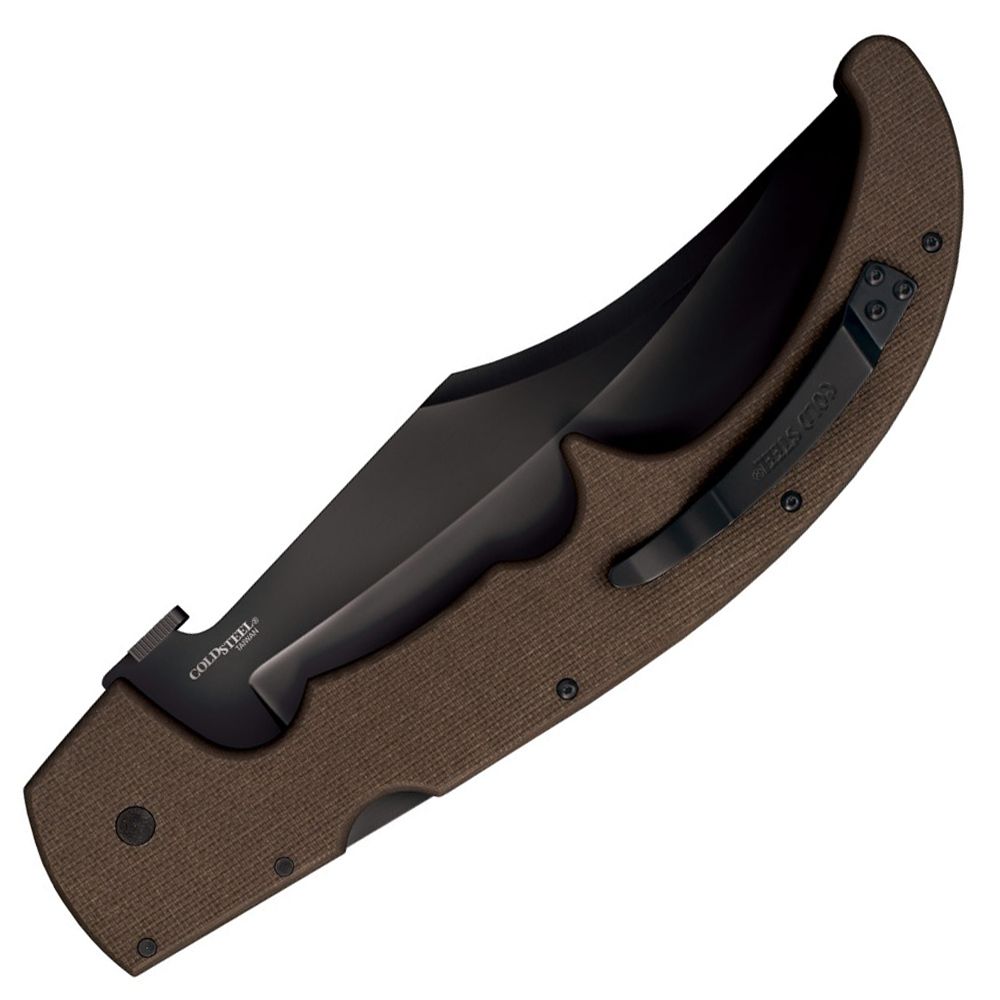 At 17-inches in length, the XL Espada no longer qualifies as a pocket knife. It’s a pocket sword. This behemoth blade folder is based on the design of the classic Spanish navaja dueling knife. The agile clip point blade narrows to razor thin tip for fast and precise slash cuts. A black DLC Coating protects the CTS-XHP steel from wear and corrosion. The G-10 handle is uniquely carved with beveled ridges and finger grooves to support a multitude of modern combat and traditional fencing grips. This scales complete the modern tactical update for this time honoured knife.