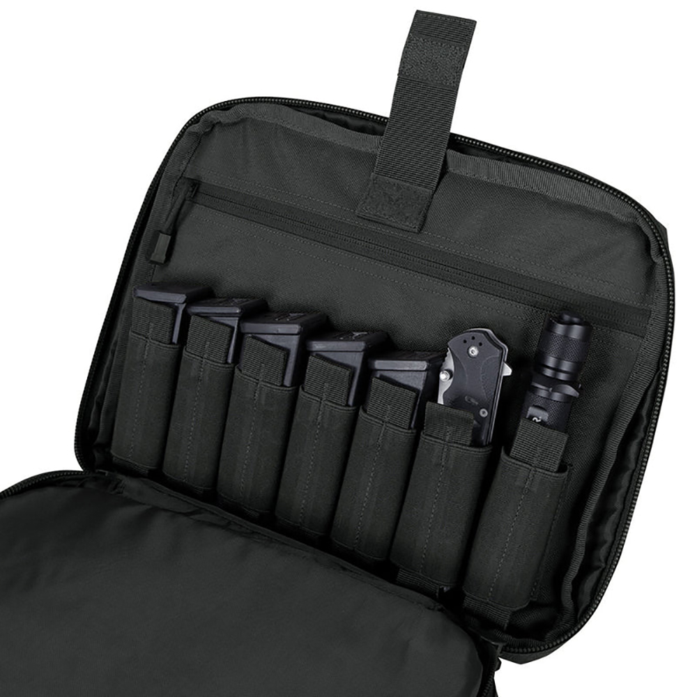 The Condor LCS pistol case is an evolved design of our original pistol case. The front is equipped with a laser cut molle panel that is made of our proprietary LCS material, enabling you to add attachments as needed. The interior is well-padded throughout for maximum protection from bumps and drops. The redesigned elastic holders will hold most pistol mags or tools with a similar profile.