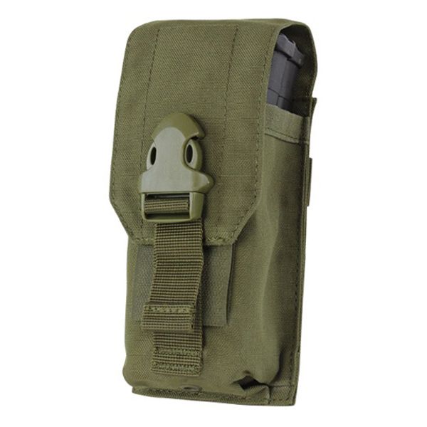 Protect your additional magazines inside the secure coverage of this Condor Rifle Mag Pouch. The wear resistant nylon can easily attach to your tactical gear through its MOLLE straps. This universal holster fits all the mags of common rifles including AR, AR and M4/M16 models. A drainage grommet on the bottom of the pouch lets you feed wire through or drain unwanted liquid. This magazine is closed with a hook/loop closure and a buckle clip to keep the mag firmly in place.