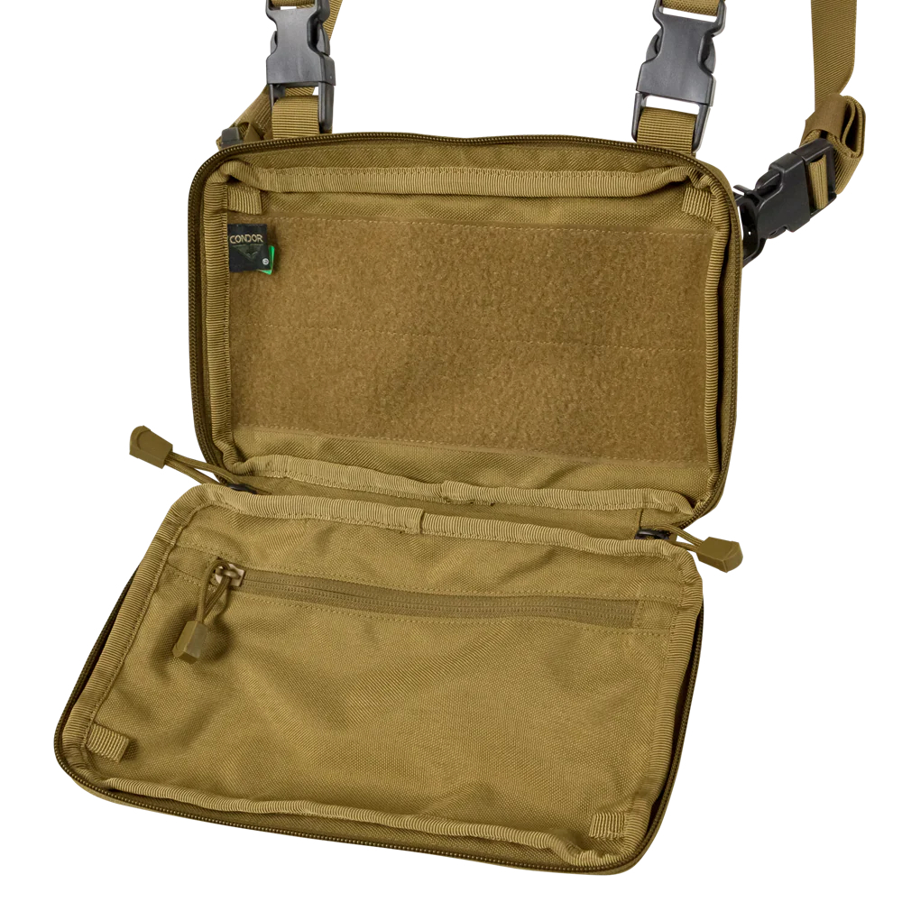 The Condor Stowaway Chest Rig is one of our most versatile platforms yet. It can be used as a stand-alone rig or work in conjunction with our VAS line of plate carriers. Its front admin pouch provides ample room to store tools and accessories. A loop panel allows the user to apply patches or other hook-backed attachments. Its defining feature is its reversible clam-shell design, which allows the rig to be folded into a compact pouch for easy storage.