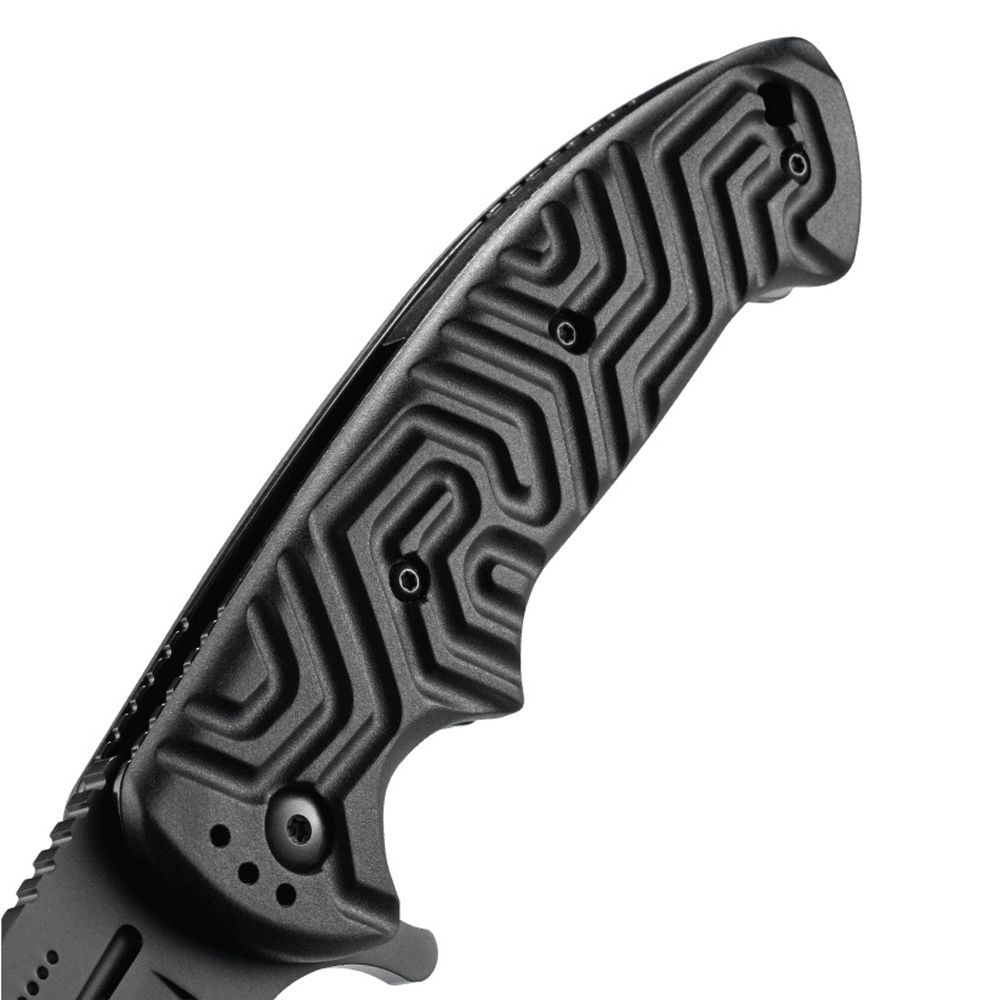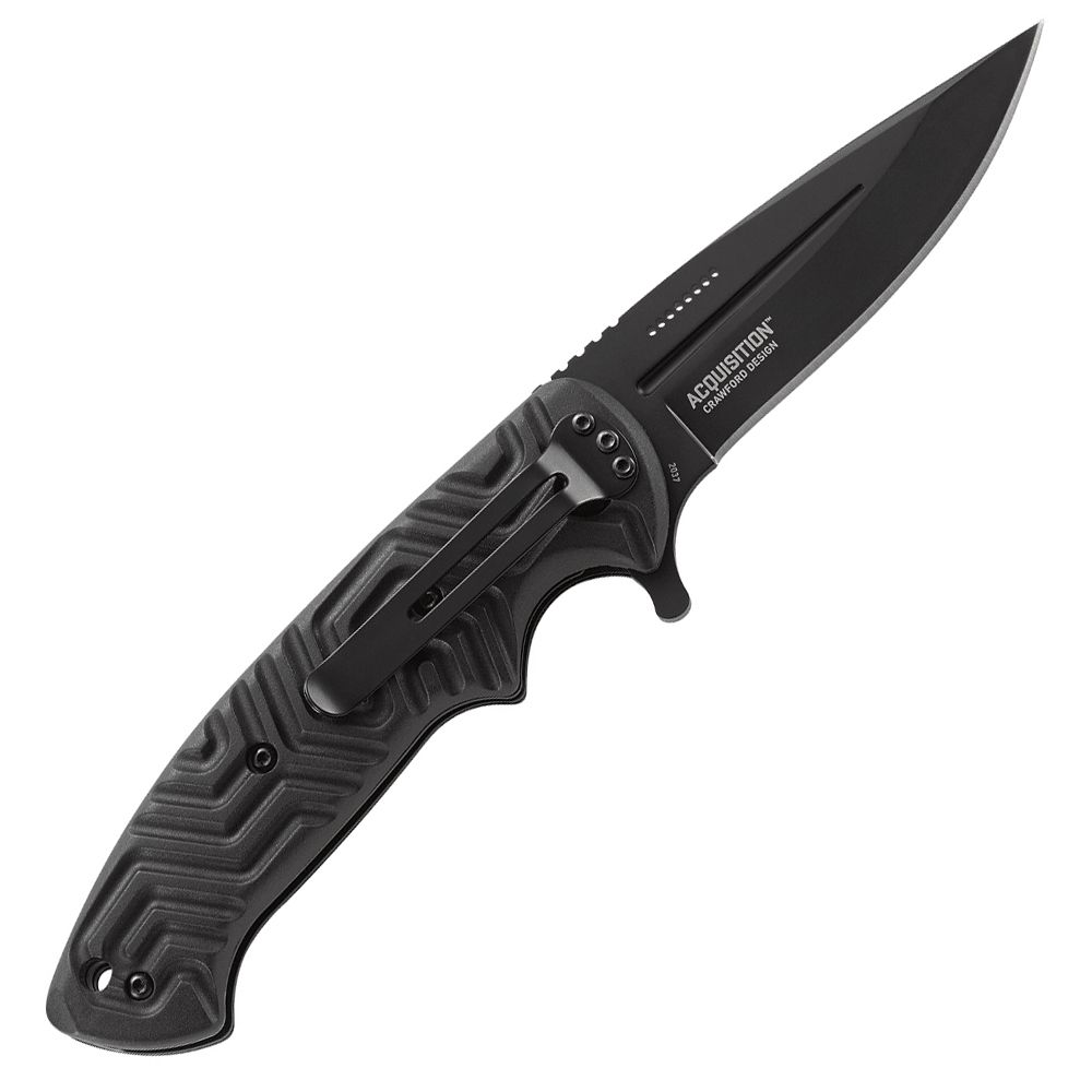 This is the one you’ll want by your side if mud, blood, and weather lie in your path. Bring along the Acquisition™ tactical knife, and you’ll acquire much more than a dependable everyday carry. It’s covert enough to keep on your person when things get scrappy, and beefy enough to mow over backcountry business.Pat Crawford of West Memphis, Arkansas notoriously designs knives with self defense in mind, and this ominous-looking modified drop point blade is no exception. The handle design gives you maximum control and 3 inches plus of black powder coated steel is good for on mission or in the field. Tough glass reinforced nylon handles help maintain a confident grip even when you’re elbow-deep in mud or blood while the locking liner safety secures the blade in its place through each burly job.
