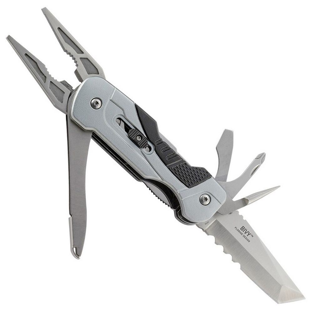 At the end of your rope? The CRKT Bivy Multi Tool Pliers are here to help. This multi-tool was designed by world-record holding speed climber and rigger for the Bandaloop Vertical Dance Troupe, Hans Florine. An experienced climber, Hans knows what it takes to reach for the sky, and he knows that it takes quality tools to get there. The Bivy features easy, one-handed operation and jumps into action at the press of a button. Features include a tanto style folding blade, Philips and flathead screwdrivers, needlenose pliers, and bottle opener. A lanyard hole and deep carry pocket clip make this multi-tool convenient for carrying at any height.