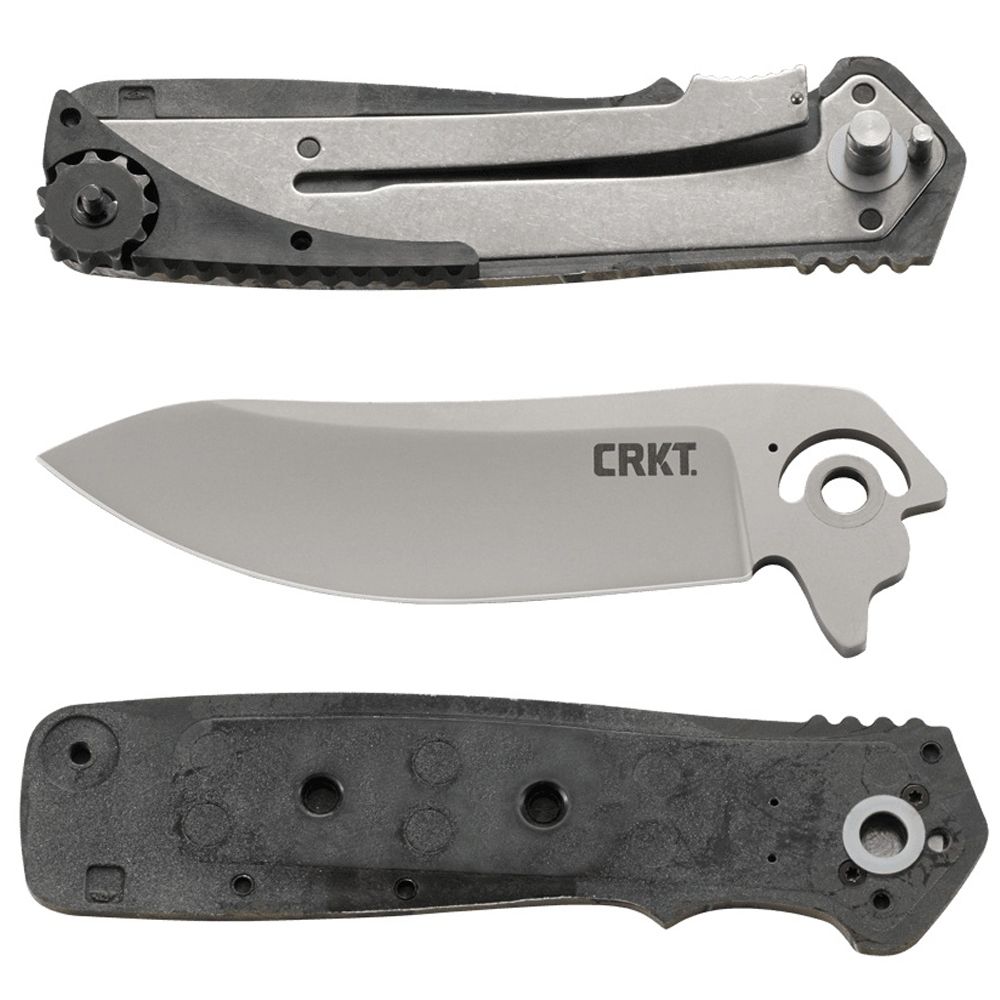 The breakthrough “Field Strip” innovation comes from the shop of world-renowned knife craftsman Ken Onion and has been over ten years in the making. To disassemble the Homefront™ Hunter when the knife is in the closed position, push the front release lever away from the blade, then spin the turn release wheel on the rear of the handle away from the pivot shaft—once you feel the handle release, pull it up and away from the blade. Reassembly is as easy as reversing the procedure, allowing for practical, quick maintenance where you stand.