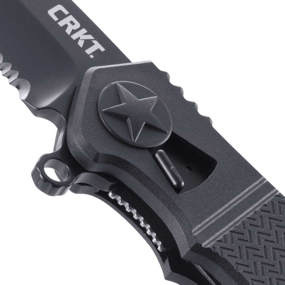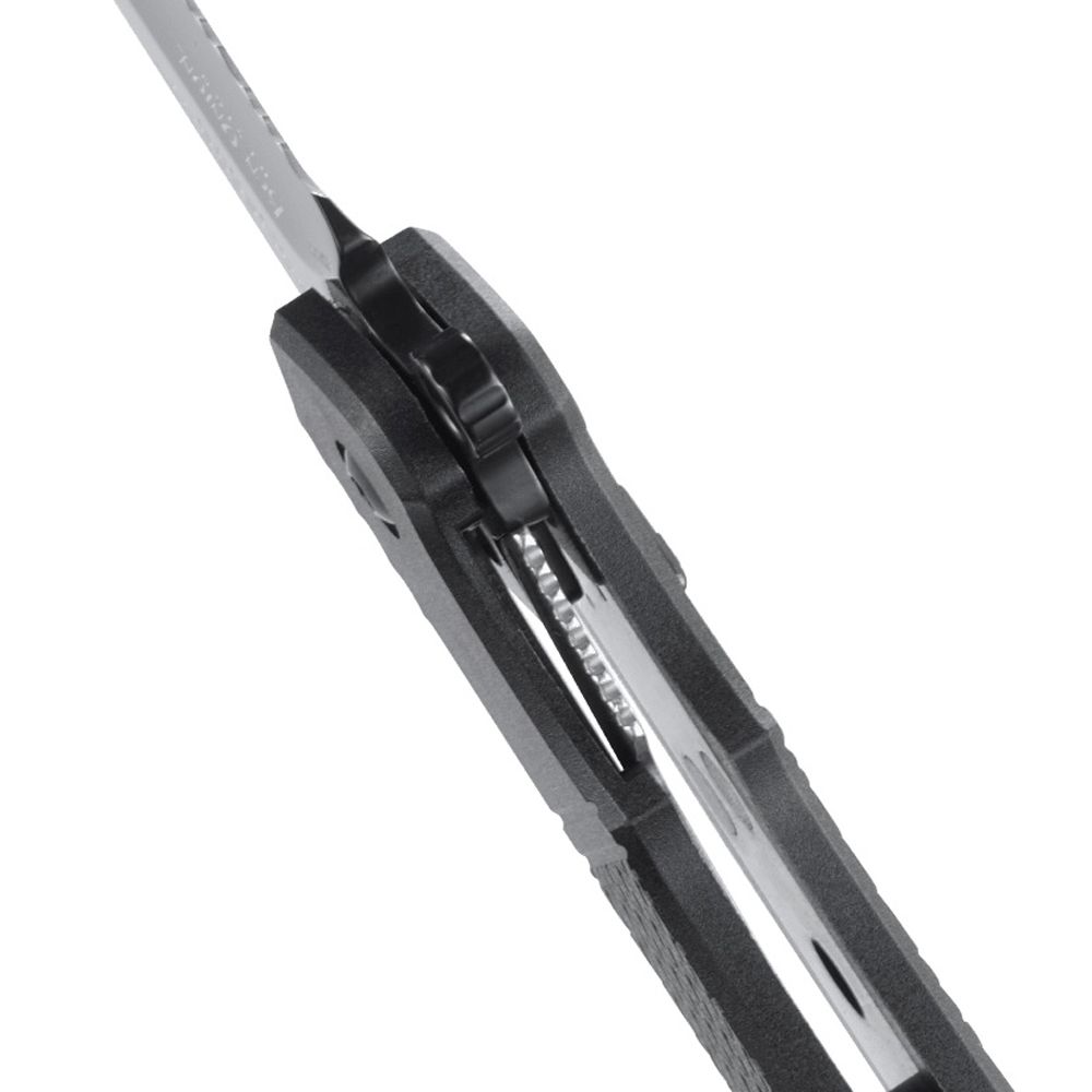 The breakthrough “Field Strip” innovation comes from the shop of world-renowned knife craftsman Ken Onion and has been over ten years in the making. To disassemble the Homefront™ Tanto when the knife is in the closed position, push the front release lever away from the blade, then spin the turn release wheel on the rear of the handle away from the pivot shaft—once you feel the handle release, pull it up and away from the blade. Reassembly is as easy as reversing the procedure, allowing for practical, quick maintenance right where you are.