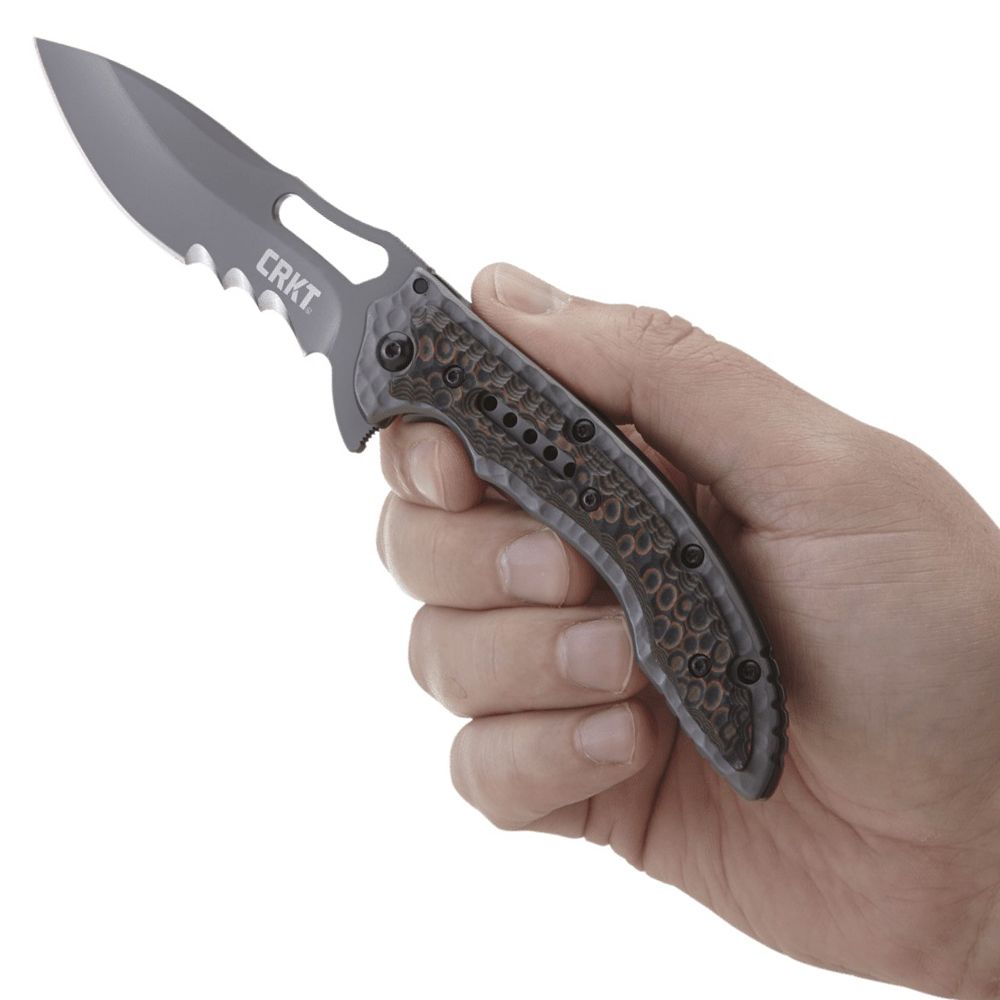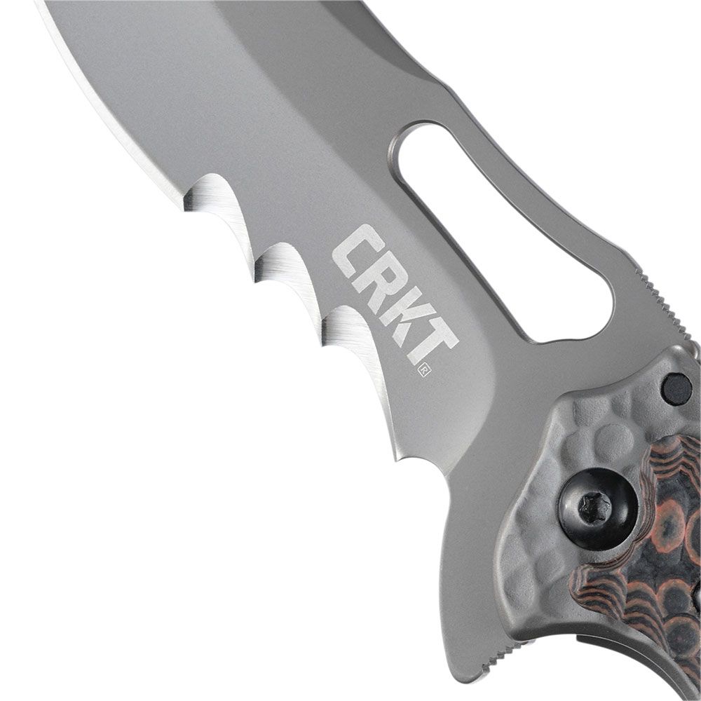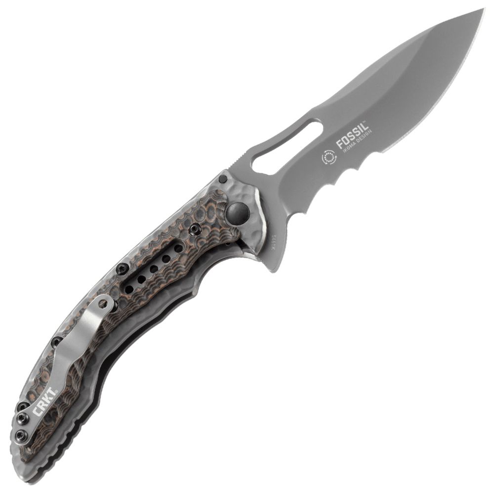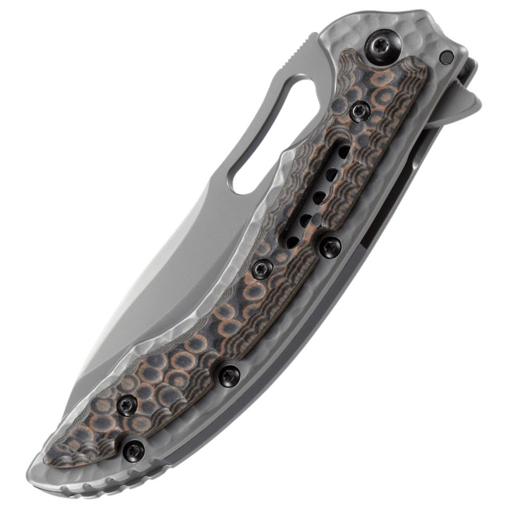 It’s a knife that harkens back to another era. But with a hammered two-tone handle and IKBS™ ball bearing pivot system, this one will never get old—especially when it comes to cutting tasks. The Fossil™ combines the best from designer Flavio Ikoma of Presidente Prudente, Brazil. With styling cues found on his previous Sampa™ and Carajas™ models, it ramps up the artistic flair to create a piece that is clearly Ikoma, yet distinctively a new breed of EDC folder.A one-of-a-kind looking pocket knife, it features the IKBS™ ball bearing pivot system, combined with an opening flipper the result is blade deployment that is smooth and fast. A thumb hole cutout in the blade gives you a second option for opening the knife. The flipper also turns into a handsome finger guard when the blade is open. In the features department, it’s survival of the fittest. While the Fossil™ is hardcore on the inside, it’s gorgeous on the outside. The handles are made of stain-less steel with a unique hammered finish. Contoured multi-colored G10 handle overlays make it look like a gator. But the blade won’t come down and bite you in the open position thanks to a frame lock.