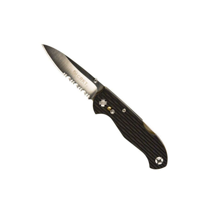 Ron Lake been called "the father of the modern folding knife" and literally co-authored the book on them in 1988, How To Make Folding Knives. But while Ron is busy making stunning custom folders in his Eugene, Oregon, workshop, he is always thinking. In this case, we believe he has perfected the lockback folder. The smaller everyday carry versions of the Lake 111™ Aluminum feature 2.50" blades and are 6.00" long when opened. They are available with Razor-Sharp or Combined Razor-Sharp and Triple-Point™ Serrated edges. These models come with a custom stainless steel clip in a brushed finish. Ron's breakthrough is his patented* Lock Back Safety (L.B.S.™) which allows the user to slide the small L.B.S. button forward to lock the blade both in the open and closed positions. When locked open, it is virtually impossible to accidentally release the blade even during vigorous cutting tasks. For those who are concerned about accidental opening, in-pocket or on-belt, simply slide the button forward to lock the knife closed until its next use. The blade is a classic drop point with a flat grind for strength and a brushed finish. Blade steel is premium 8Cr14MoV stainless steel (equivalent to AUS 8). Dual Lake-style thumb studs give fast either-hand opening, and the lockback release allows easy one-hand closing