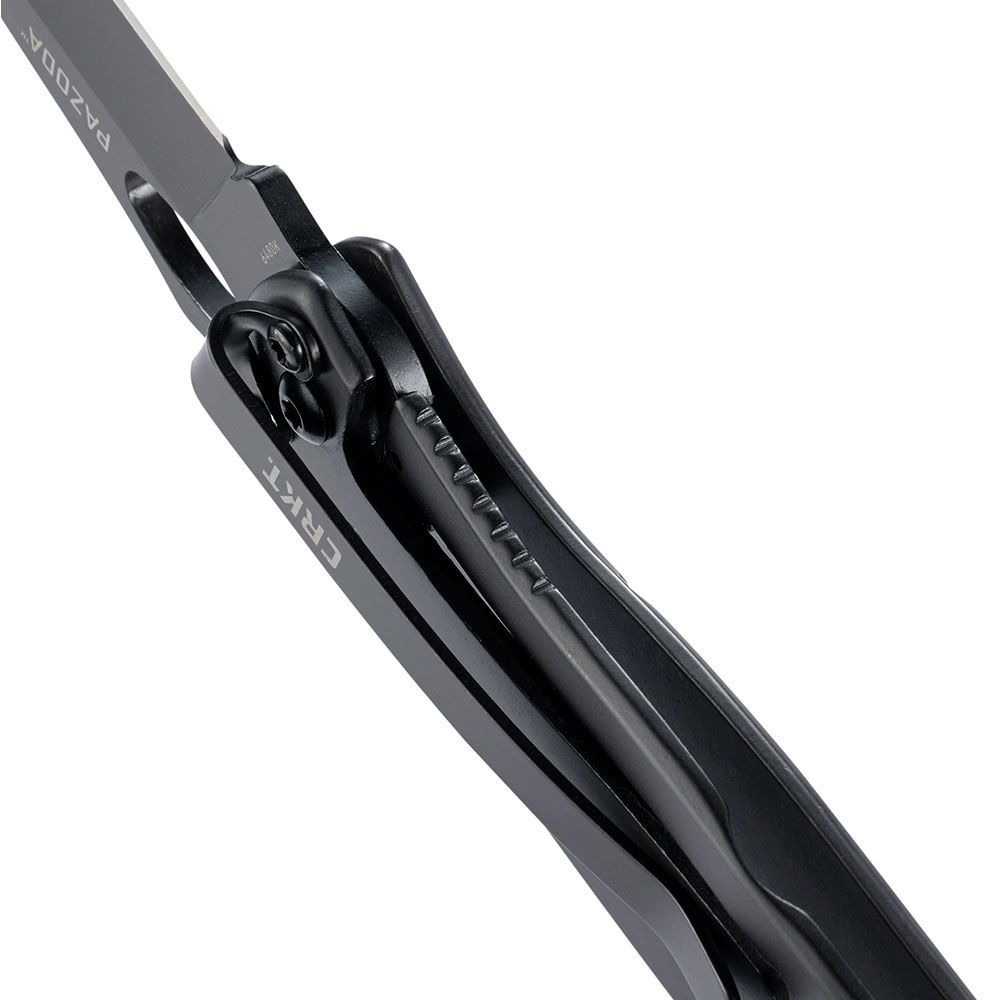 You almost don't want to get it dirty. Almost.With its stylish frame and clean lines, it almost feels wrong to use the Pazoda™. But once you've got this blade in hand, that feeling goes away real quick.The Pazoda™ family of pocket knives is subtly stylish and expertly efficient. The Pazoda™ Black has a black titanium nitride finish for wear resistance and a subtle silhouette when in use. It features an oval thumb hole for easy ambidextrous opening and a stainless steel frame lock. This folding knife has a deep carry pocket clip for tip down carry and it rides low and inconspicuous in your pocket. The smooth stainless steel handles of the Pazoda™ Black are ideal for personalized laser etching or simple engraving.The Pazoda™: a stylish knife that isn't afraid to get run through the mud.