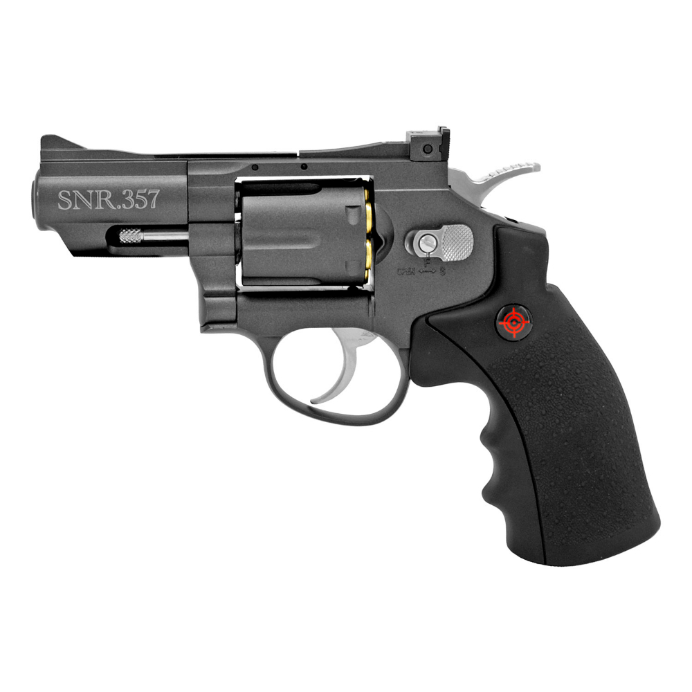 The best air pistol is the one you have with you, or so the saying goes. The new Crosman SNR357 ("SNR" = Snub Nose Revolver) has the heft and feel of a Saturday Night Special with none of the powder. Add dual ammo capabilities and realistic loading with the included reusable cartridges and the backyard becomes the ideal practice range.