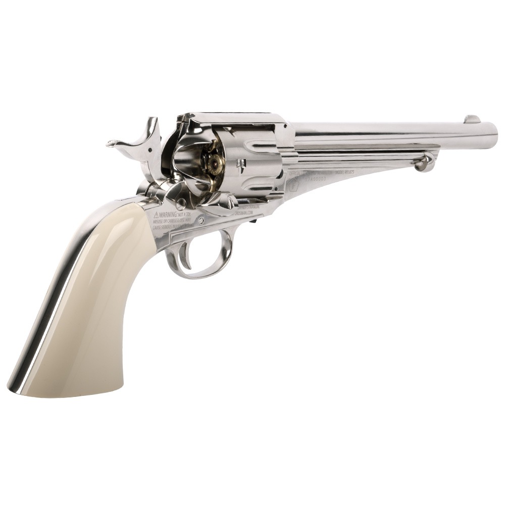 The Remington Model 1875 CO2 revolver pays homage to the old west, and is one of the most famous handguns in American history. It loads like a real single action revolver with each BB or pellet cartridge inserted separately into the cylinder chambers and once loaded you are instantly ready for plinking some cans and paper targets in your backyard at an amazing velocity and accuracy.