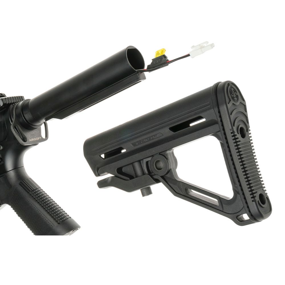 TEquipped with a high quality CNC machined M-LOK handguard and a full top RIS rail this weapon will also leave you plenty of room for any desired add-ons and optics to operate with more precision and better aim. A polymer MTR-S1 stock with a much bigger battery compartment and a non-slippery easy to remove butt pad will give your gun a much overall lighter weight easy to carry around.