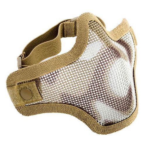 Keep your beautiful mug protected during skirmishes with the Cybergun Cybergun Half Face Mask. This rugged desert camo mask has a strong steel mesh front to block stray BBs and other flying projectiles. The adjustable strap makes it easy to get a secure fit. Wear with tactical goggles for full face protection.