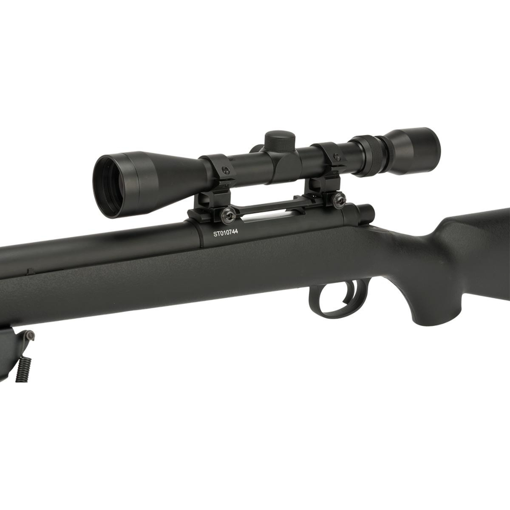The CYMA VSR-10 Bolt Action Airsoft Rifle showcases the sophisticated external design of a high-grade VSR-10 sniper rifle. It boasts easily upgradable internals compatible with Tokyo Marui, JG, and HFC, offers good magazine availability and compatibility, and is ready for both bipod and scope attachments.