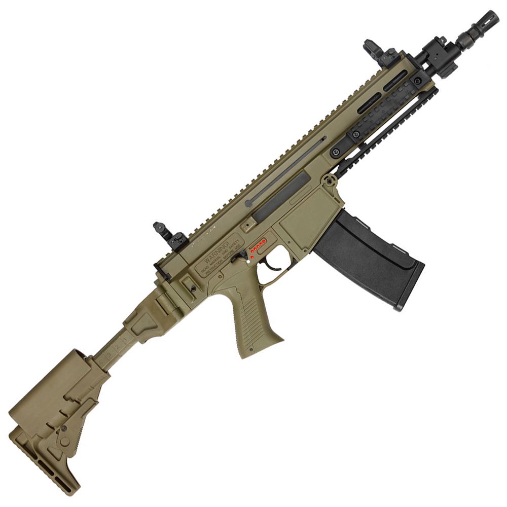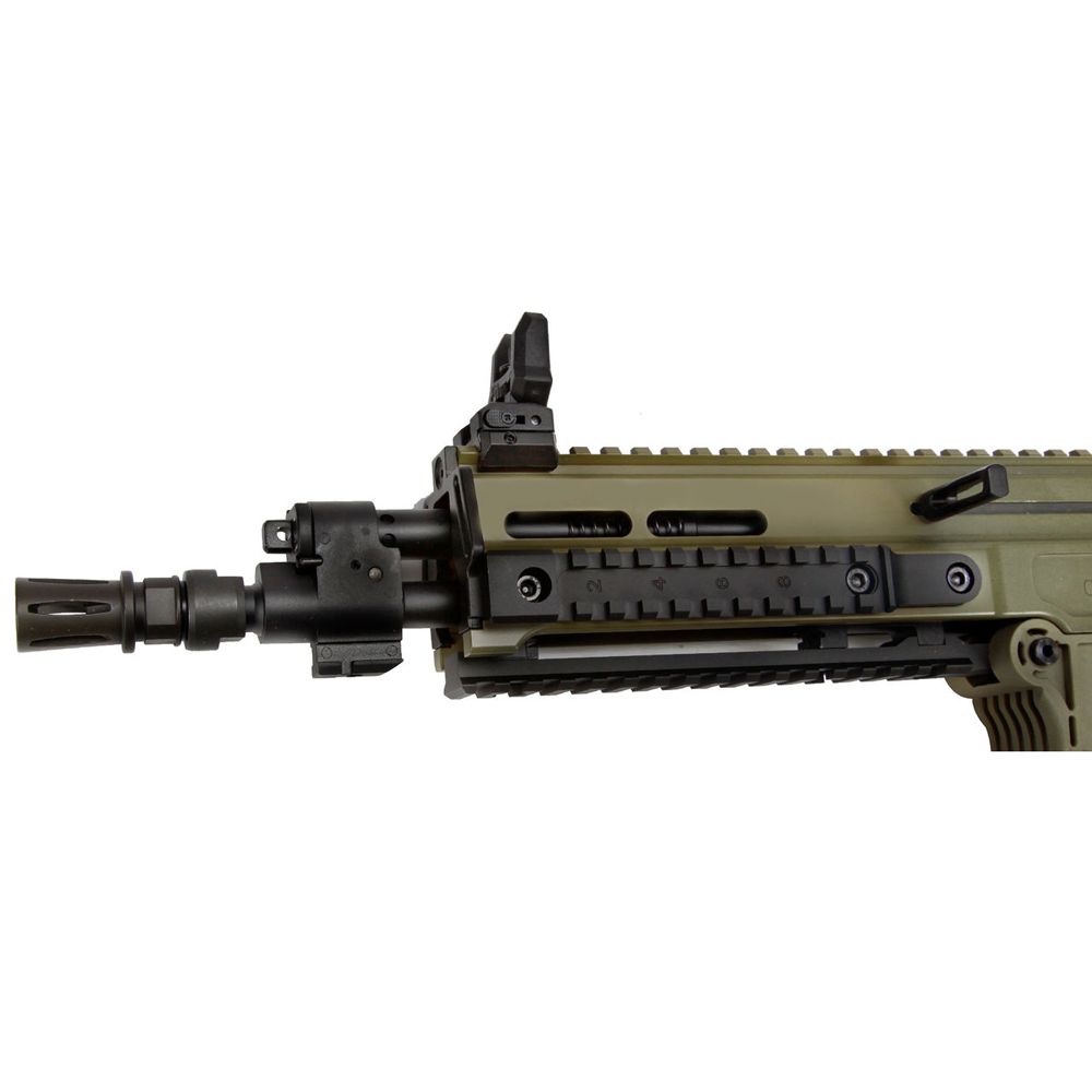 The CZ 805 BREN A2 Airsoft Assault Rifle is ready for battle. This compact and maneuverable AEG comes equipped with a foldable stock, which be adjusted for length or removed completely when maximum compactness is required for CQB. Picatinny rails run along the top, bottom, and sides, making it easy to attach accessories. The desert tan colour provides a higher degree of camouflage than standard black colours. Batteries and charger not included.
