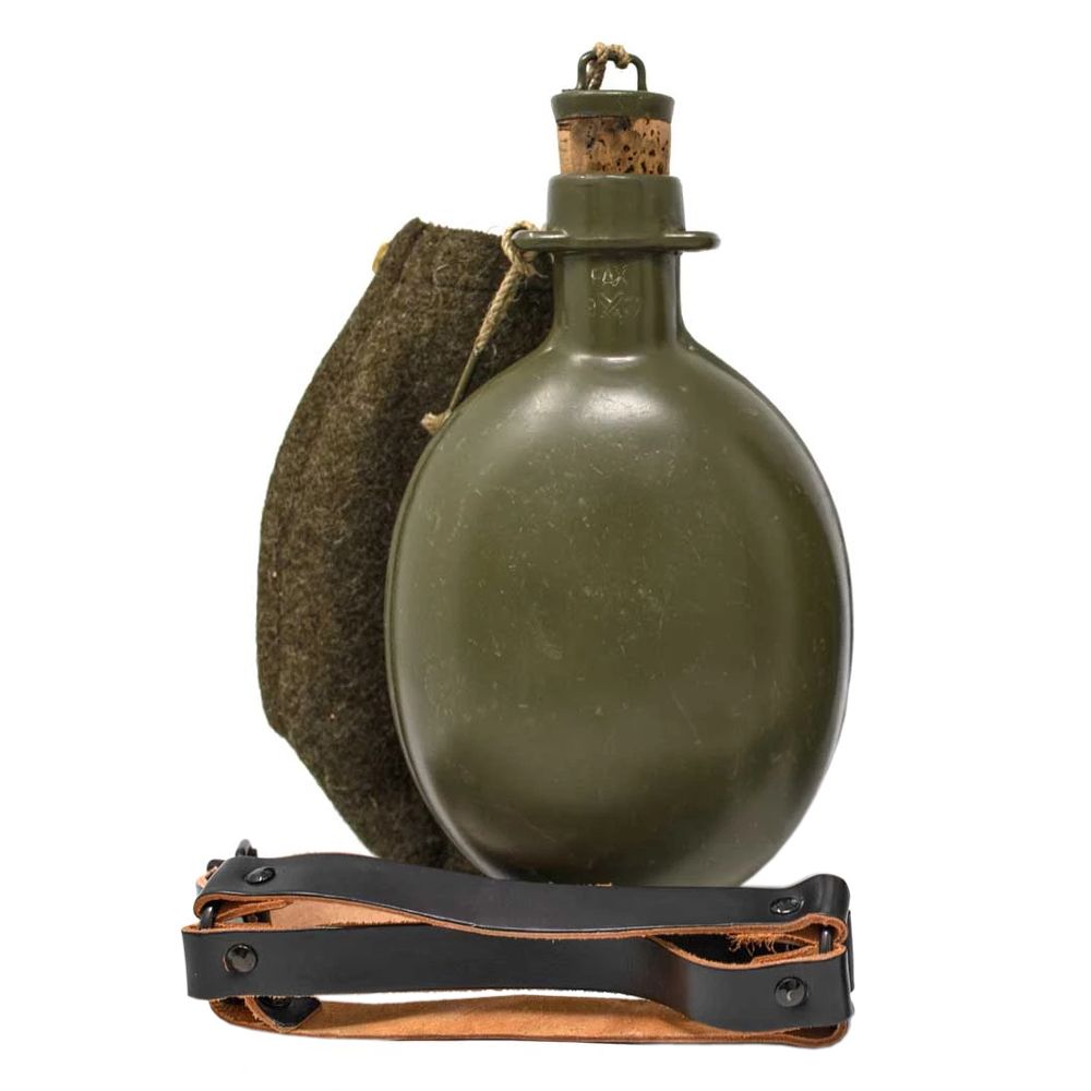 This is the original Czech Army issue metal M60 canteens (0.8 L). It comes with a wool cover for insulation and a leather strap that you can attach to your gear. It comes with a cork. Great to take hiking, backpacking, to a festival, or on a road trip. You can't beat the old look and feel of this canteen nor its functionality. The wool cover is both soft on your hands and insulating. The Czech military chose wool for its incredible ability to both insulate and protect the canteens. The genuine leather straps are tough and the canteen itself is in great condition.