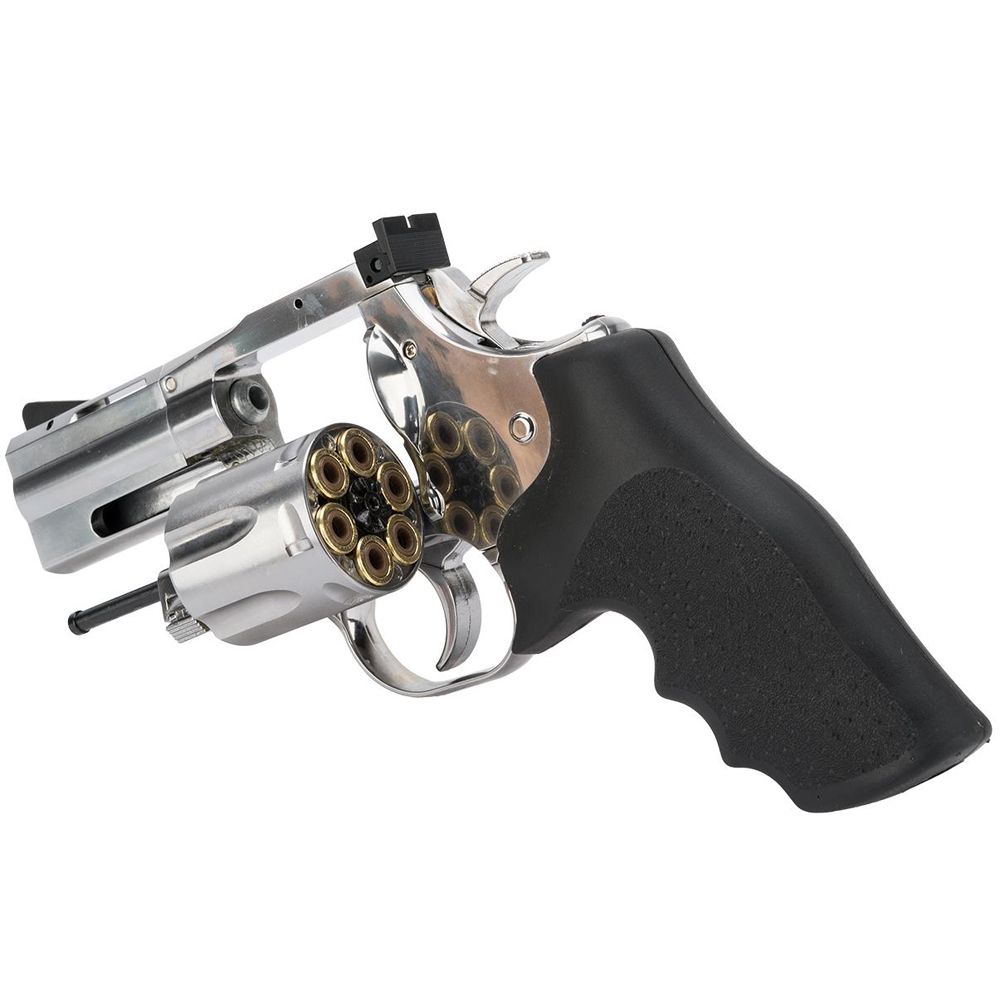 Discreet, compact, and ultra-fast—this Dan Wesson 715 revolver marks a new standard in pellet guns. The snubnose 2.5 inch barrel provides concealability, agility, and the same immense level of firepower behind all DW guns. Unlike the BB and airsoft 715, the pellet model features rear loading shells that can be quickly loaded without removal from the cylinder. Six shells and a speedloader are included with the gun.
