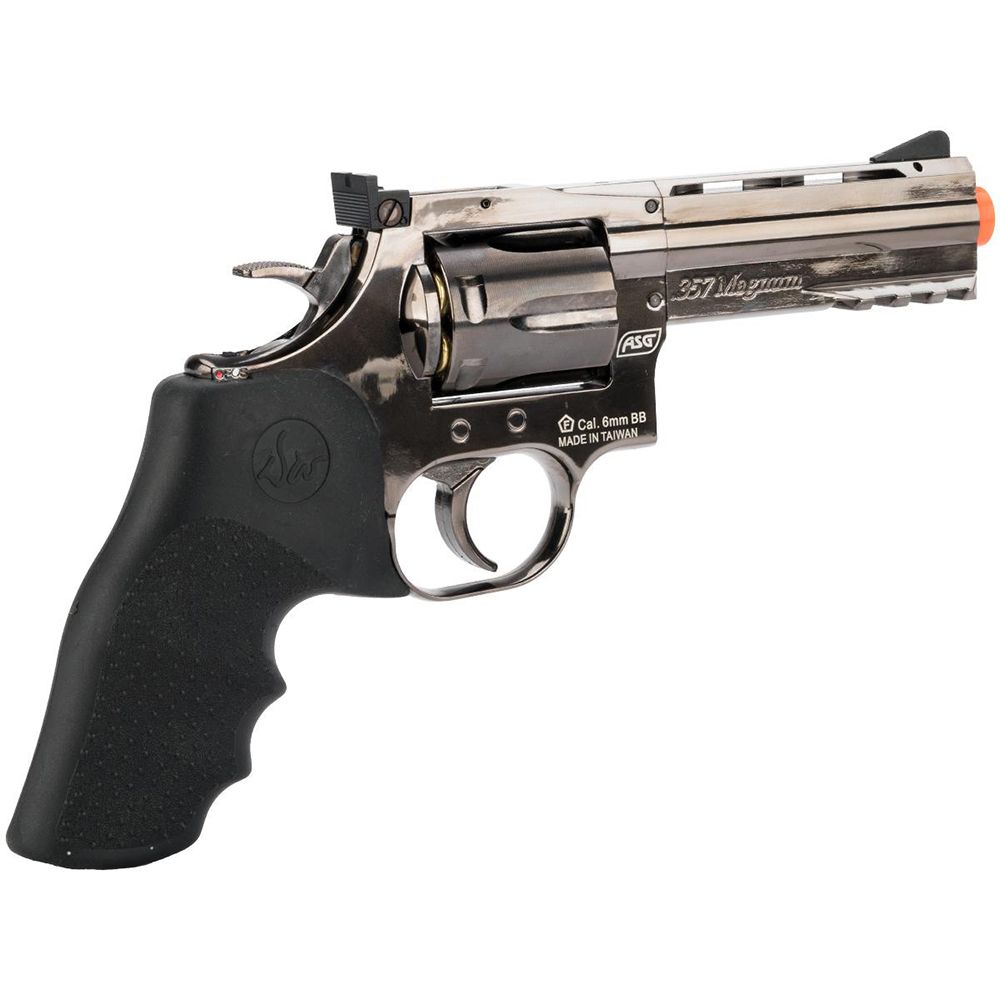 There are few statement pieces quite like a big, shiny revolver and the Dan Wesson 715 is no exception. Manufactured with CQB play in mind, this 410 FPS CO2 revolver is built with a rock-solid nearly all-metal design sporting officially licensed Dan Wesson trademarks. A 12g CO2 singlet can be easily installed into the stippled ergo pistol grip and last multiple reloads. A discreet safety is built in behind the hammer that prevents accidental firing. Revolver scope and accessory rails can also be mounted to the barrel for attaching additional aftermarket accessories. This revolver also has an adjustable hop up unit for added range and accuracy.