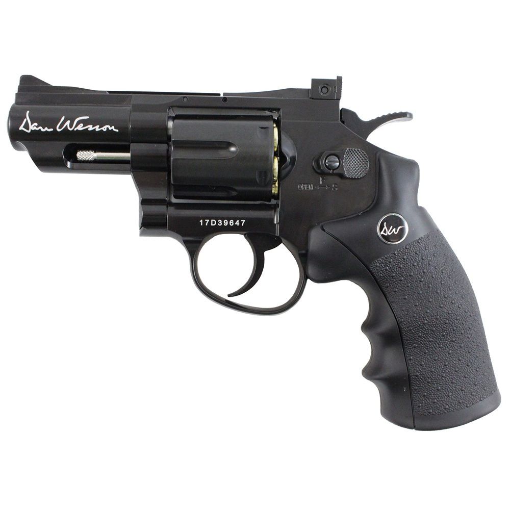 This 2.5” Black revolver licensed by Dan Wesson, offers realistic shooting fun in a handy size. It has authentic markings and a individual serial number stamped into the frame. The revolver features a double action trigger system and adjustable rear sight for extra realism and accuracy. The Dan Wesson revolver is made of metal except for the ergonomic grip constructed in hard ABS plastic. The 12g CO2 cartridge is stored in the grip and is easily accessed by sliding the grip back - easy-load style. Each of the 6 cartridges holds one 6mm BB and is placed in the metal cylinder that rotates as each round is fired. The revolver comes with speed-loader, attachable tactical rail and 6 cartridges.
