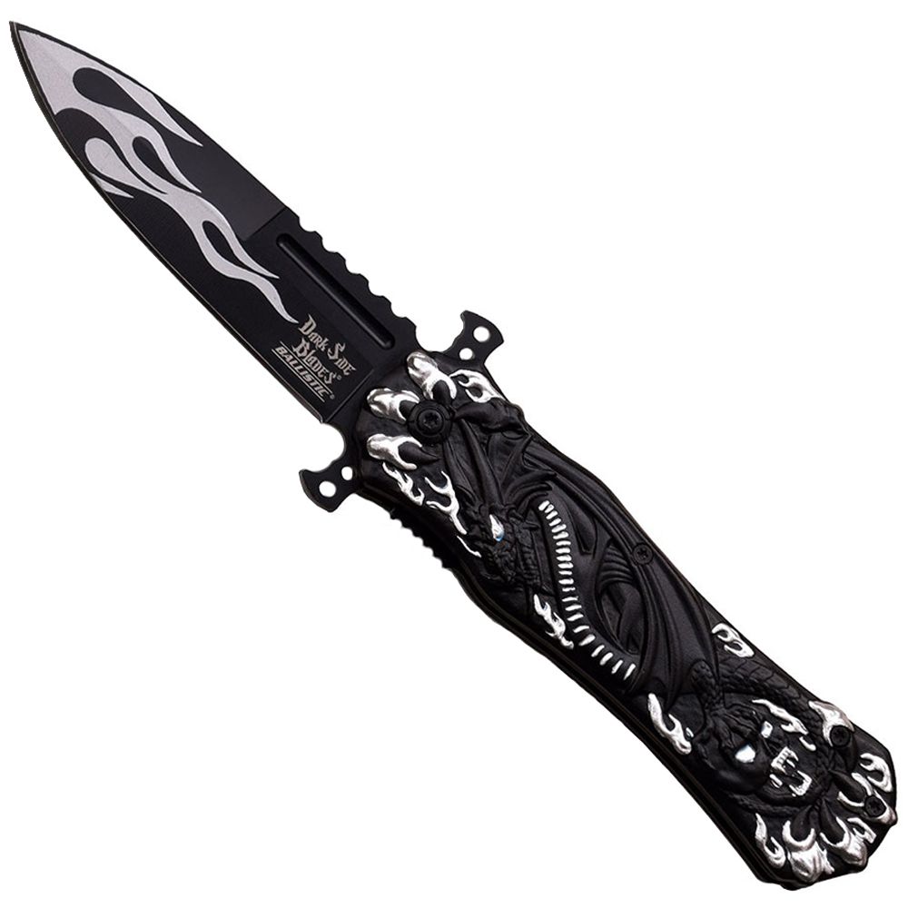 • Black Finished Blade With Blue, Purple, Red And Silver Flame Graphic