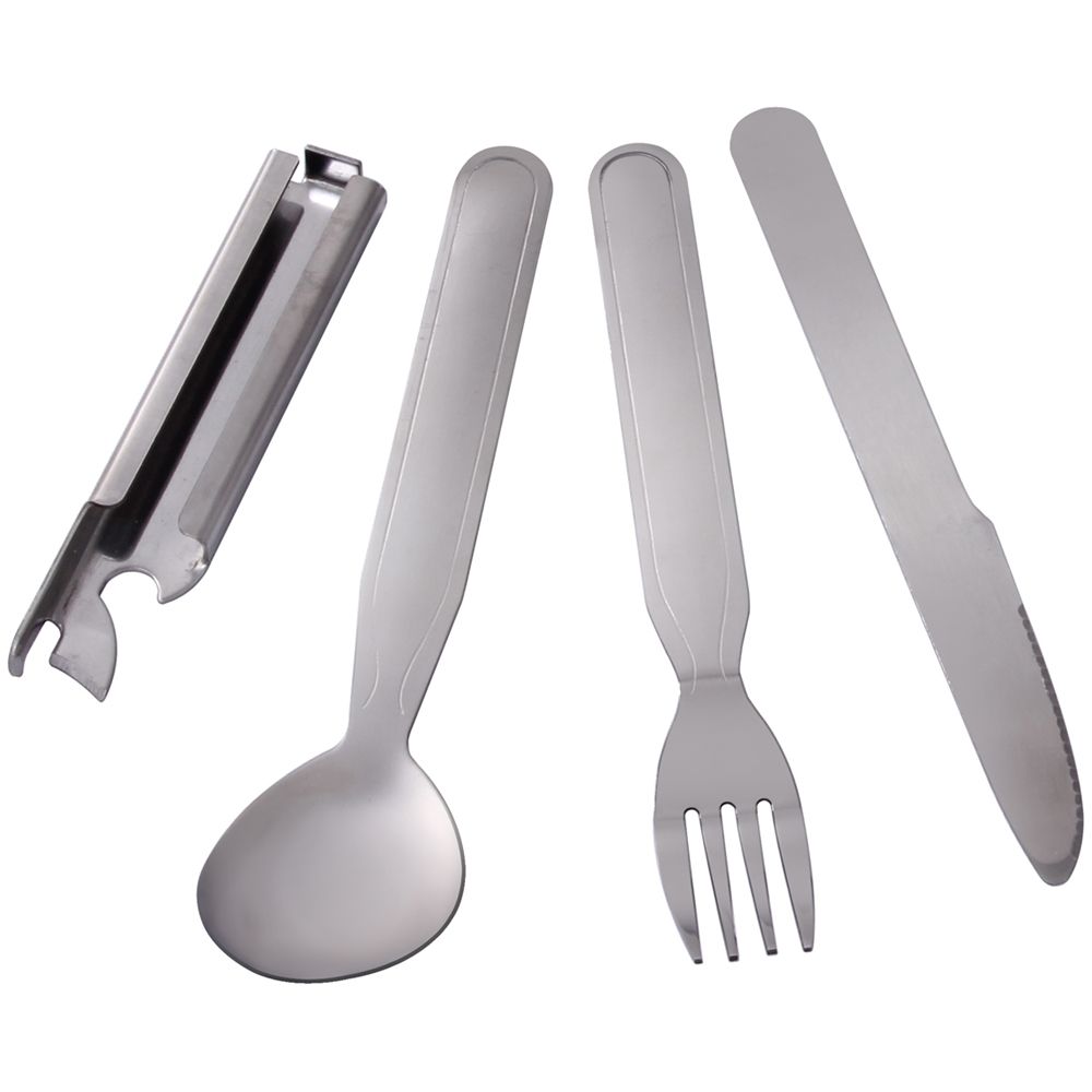 Deluxe Chow Set is manufactured by keeping in mind the comfortability to use it for outdoor activities. The Chow set is really huge with four Spork pieces. The set includes one spoon, one knife, one fork and one can opener. All these four pieces are made of quality stainless steel. So there is no worry about its durability. The Deluxe chow set is so compact that it can be carried easily. It is ideal for hiking, hunting, camping and tactical operations. The spoon, knife, fork and can opener are huge in size. It is packed in a small case.