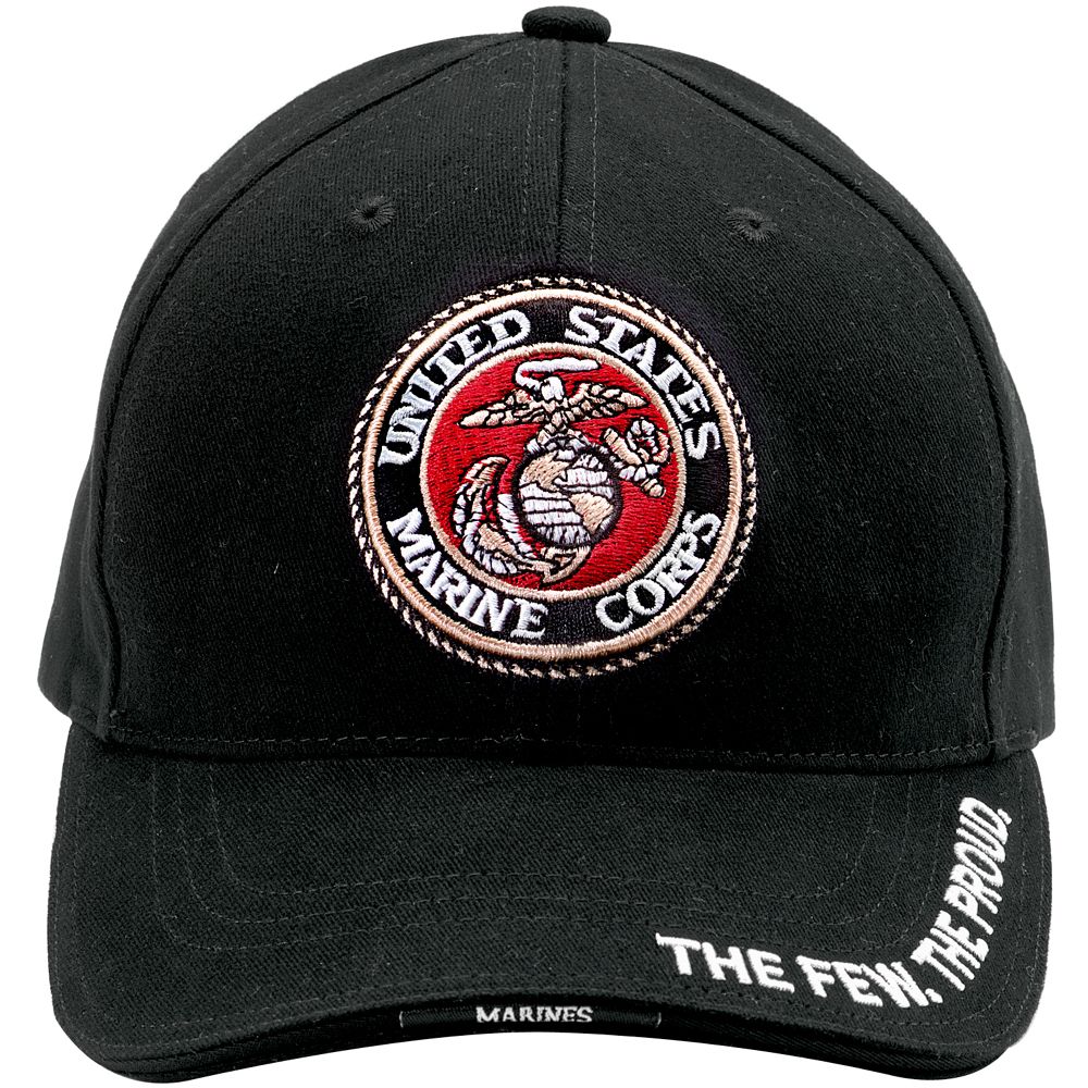 Raised USMC G & A Logo Sandwich Brim With 1 Pc. Woven Label Front Panel With Raised Usmc G & A Logo Upper Brim With ''The Few The Proud'' Direct Embroidery Seam Tape With One Color Direct Print ''Rothco'' Officially Licensed By U.S. Marines.