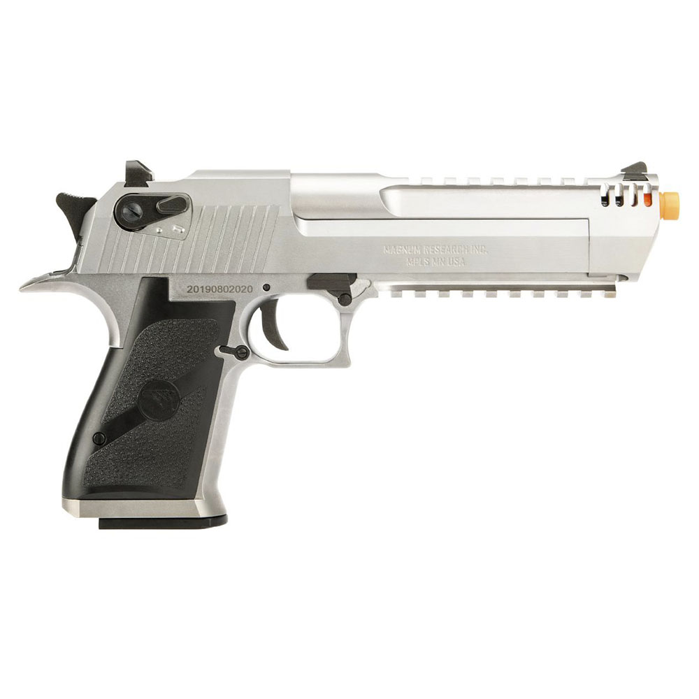 Driven by green gas, the Cybergun Desert Eagle .50AE models boast some really great theme and unique shapes that make them instantly recognizable. The pistol gains its popularity by being the rarest one of its platform to fire 0.50AE bullets at a relatively high FPS and superb recoil absorption. Its realistic blowback action provides a healthy kick and an impressive display of performance while the top and bottom rails will simply add more to its credibility giving users a bigger scope for customizations.