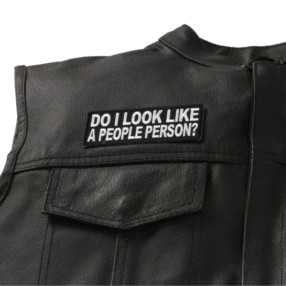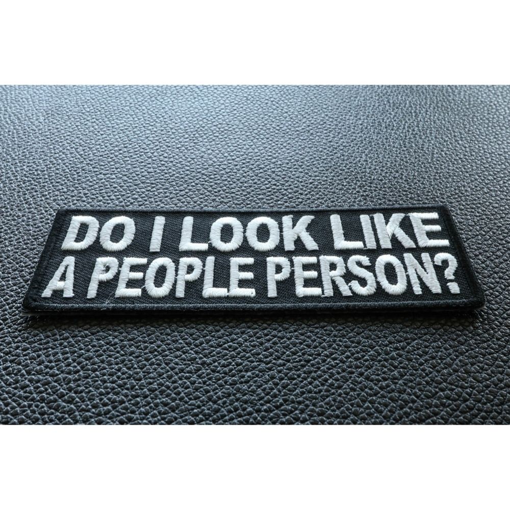 Express Yourself With The Do I Look Like A People Person Funny Iron-On-Patch! This Hilarious Patch Features The Bold Statement “Do I Look Like A People Person?” Embroidered In Crisp White Over A Sturdy Black Twill. Measuring 4x1.5 Inches, This Patch Is Perfect For Adding A Touch Of Humor To Your Biker Gear, Jackets, Or Everyday Clothing.