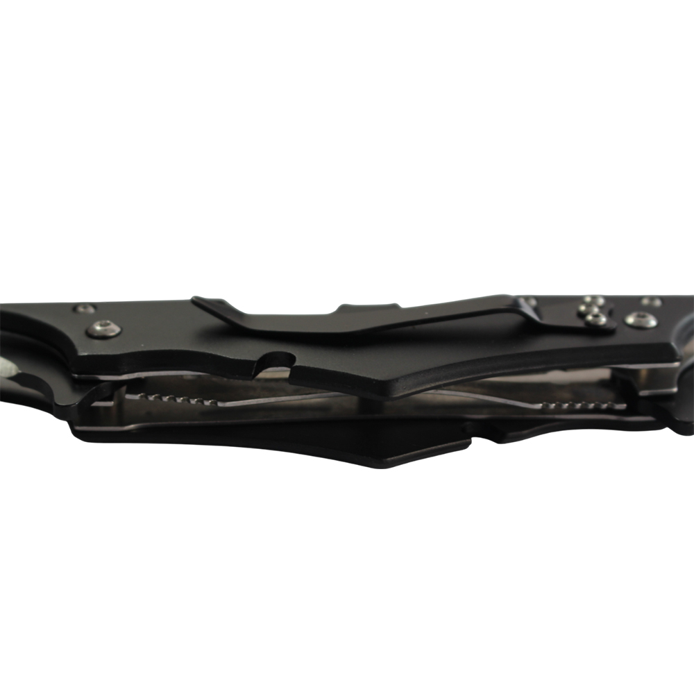 The Dual Blade Assisted Bat Knife is a uniquely designed folding knife featuring a bat-wing-inspired dual-blade system. With an aluminum handle and assisted opening mechanism, this knife is both functional and eye-catching.