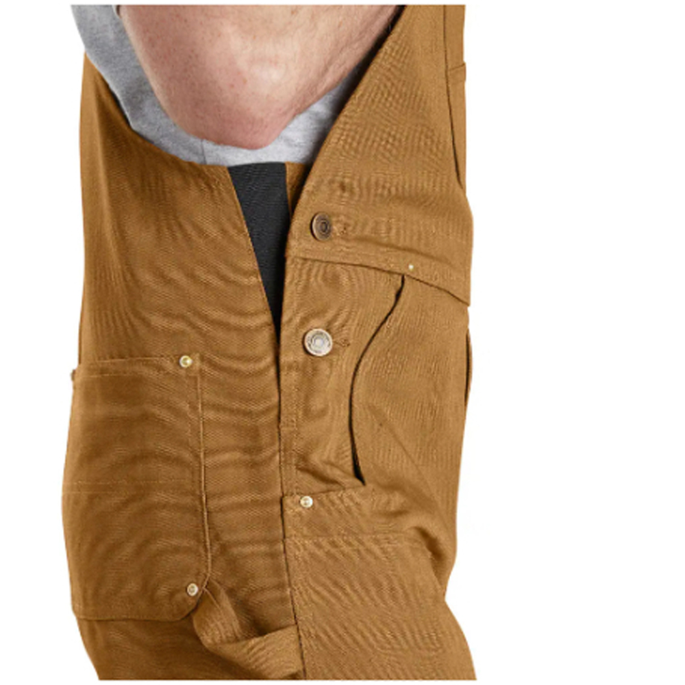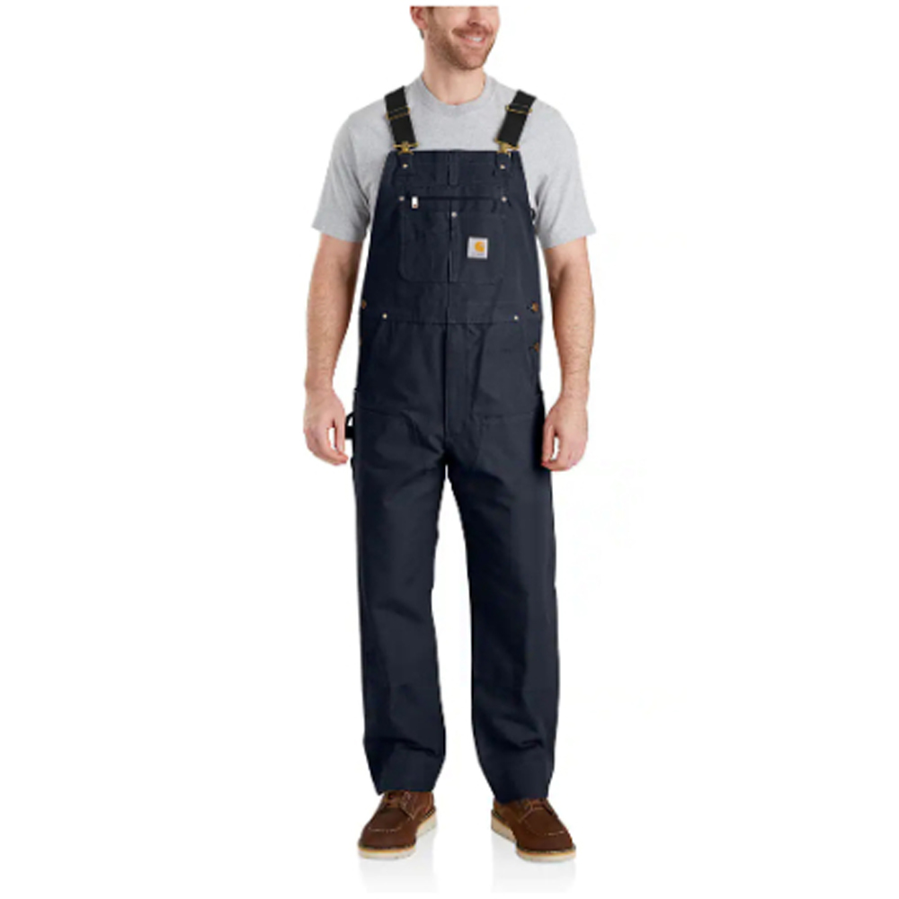 Carhartt's most popular unlined bibs, these men's canvas overalls stand up to seasons of hard work. Stretch inserts at the waist increase the range of motion, while a variety of pockets and tool loops keep the essentials close at hand.