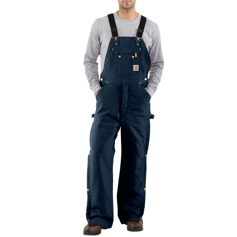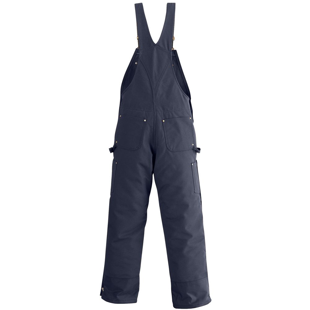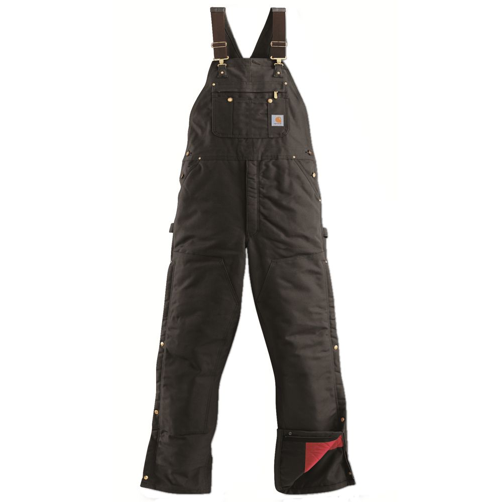 12-ounce, firm-hand, 100% ring-spun cotton duck, heavyweight Nylon quilted polyester lining to waist Chap-style double front construction Ankle-to-thigh leg zippers with protective wind flaps Back-leg Cordura kick panels add extra durability