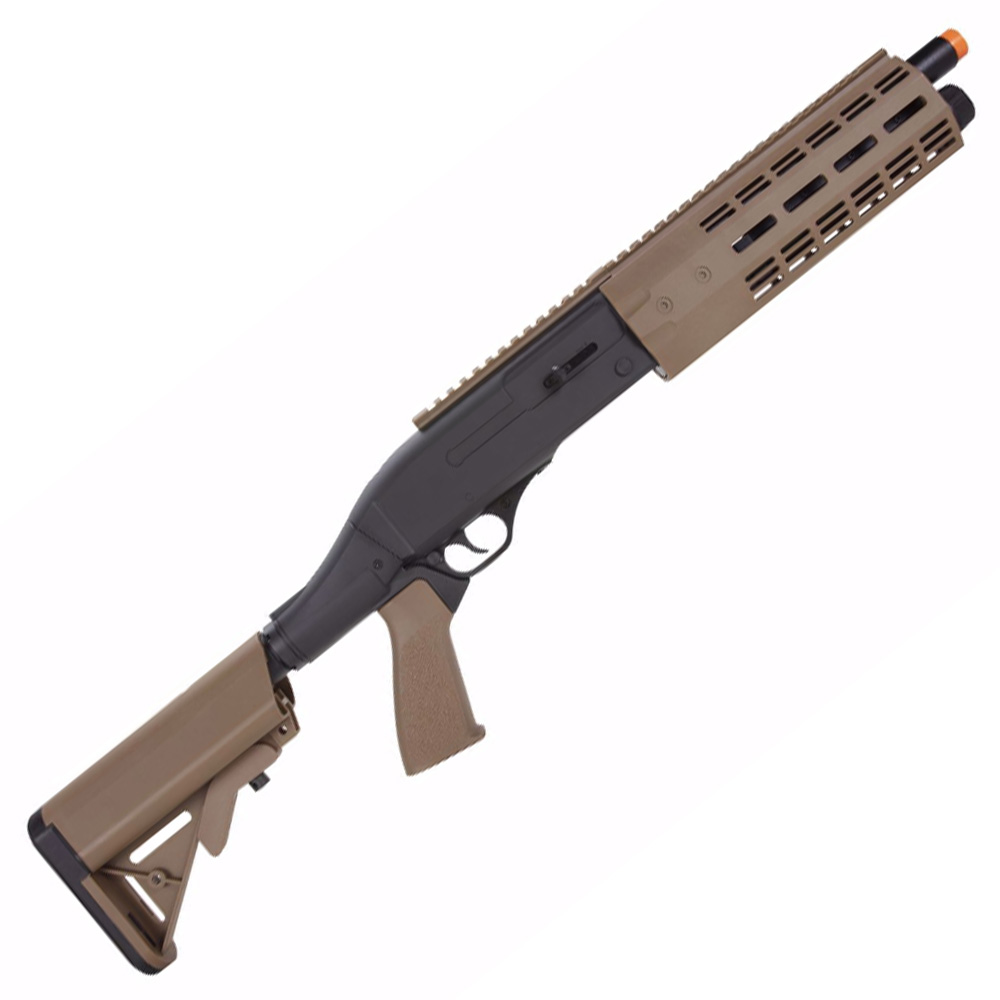 If you are looking for a new way to spice up your CQB game, check out the CO2 powered Elite Force Airsoft Tri-Shot 3-Round Burst Shotgun. This compact shotgun is powered by two 12 gram CO2 cartridges which are housed in the buffer tube. Expect .20 gram BBs to fly at 340 FPS and each shot shell holds 30 BBs for a total of ten shots of 3 BBs per shotshell. The Tri-Shot CO2 comes with 7 shotshells and a speedloader. you'll find a full length Picatinny rail on top with M-LOK slots on both sides and the bottom of the forend.