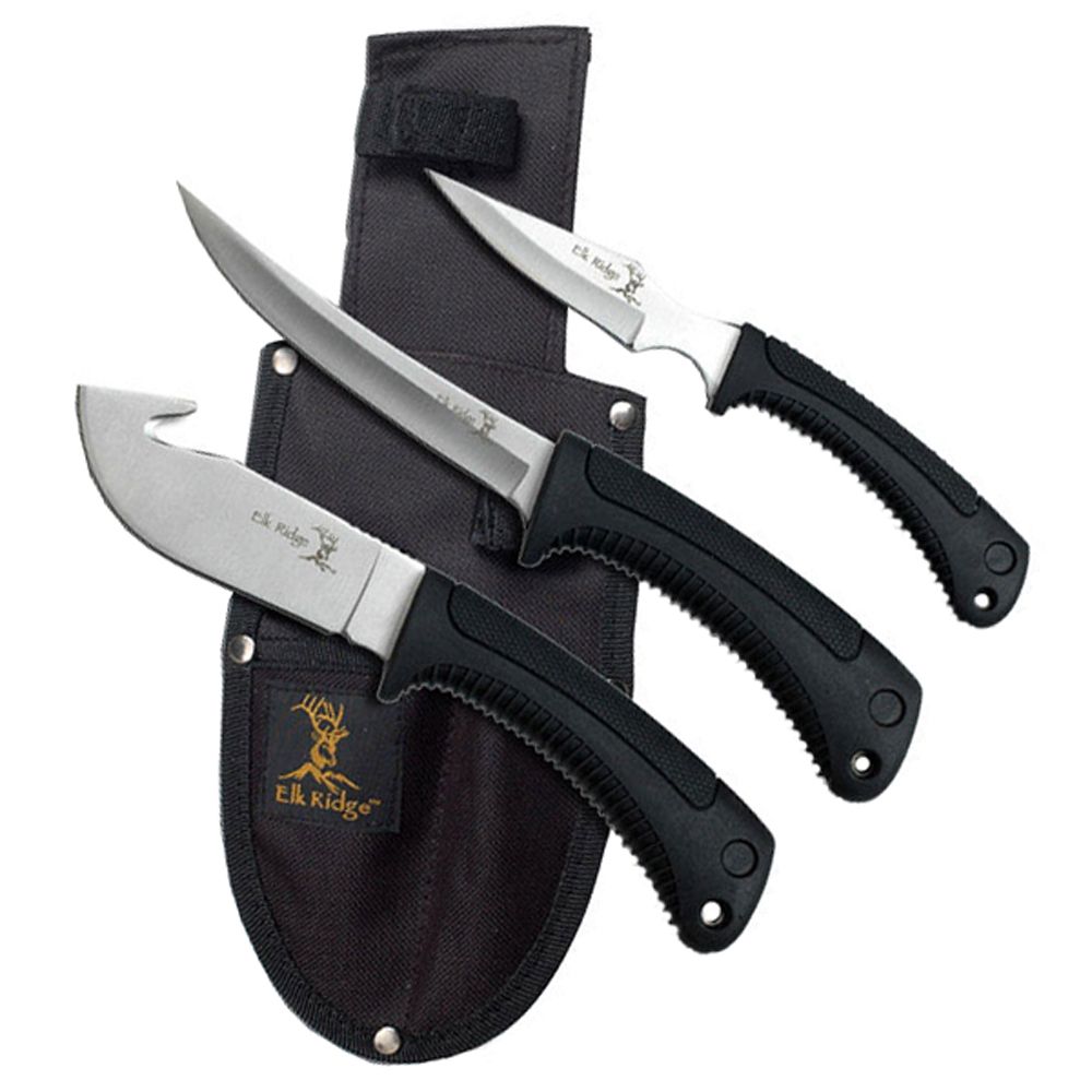 • 3 Piece Set, 9.25" Gut Hook, 10" Fillet, 8" Caper, Overall
