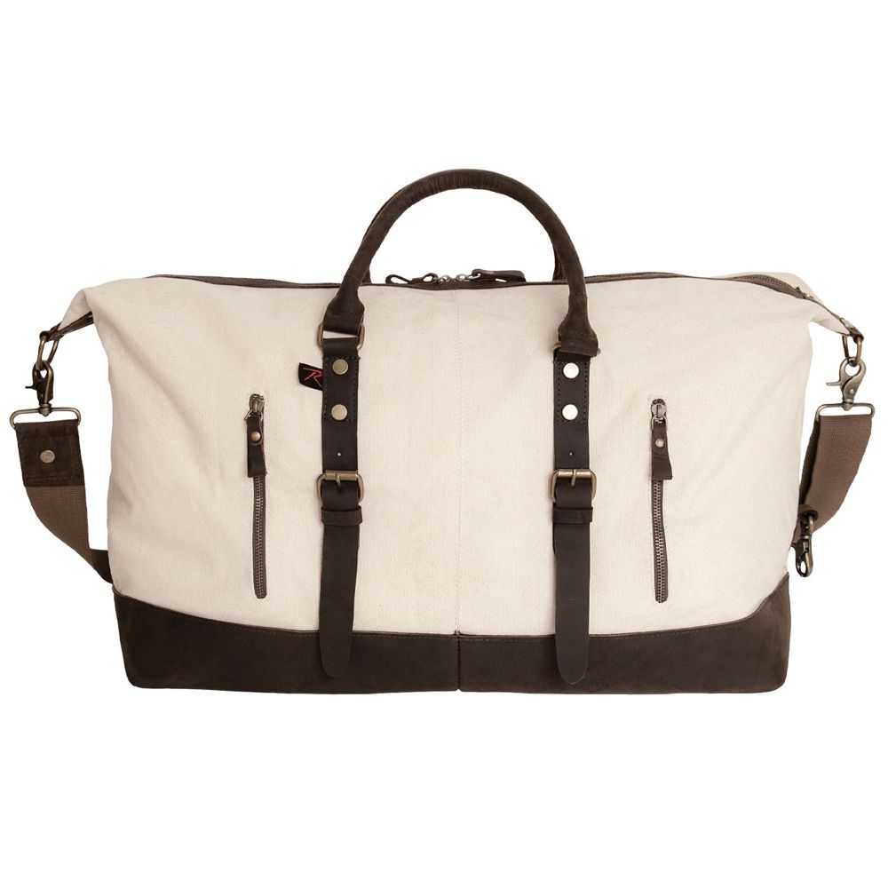 Extended Weekender Bag measures 23” X 11” X 14” and offers plenty of storage for your next adventure. The oversized travel bag features two front side access zippered pockets, one rear zippered pocket, three interior open-top pockets, and two inside zippered pockets, keeping all of your contents organized and secure. For carrying purposes, this canvas bag has two carry handles and a fully adjustable and removable shoulder strap. The weekender duffle is made with a heavyweight washed cotton canvas outer body and interior denim lining, and features brown buffalo leather accents and brass hardware and zippers to give an authentic vintage look.
