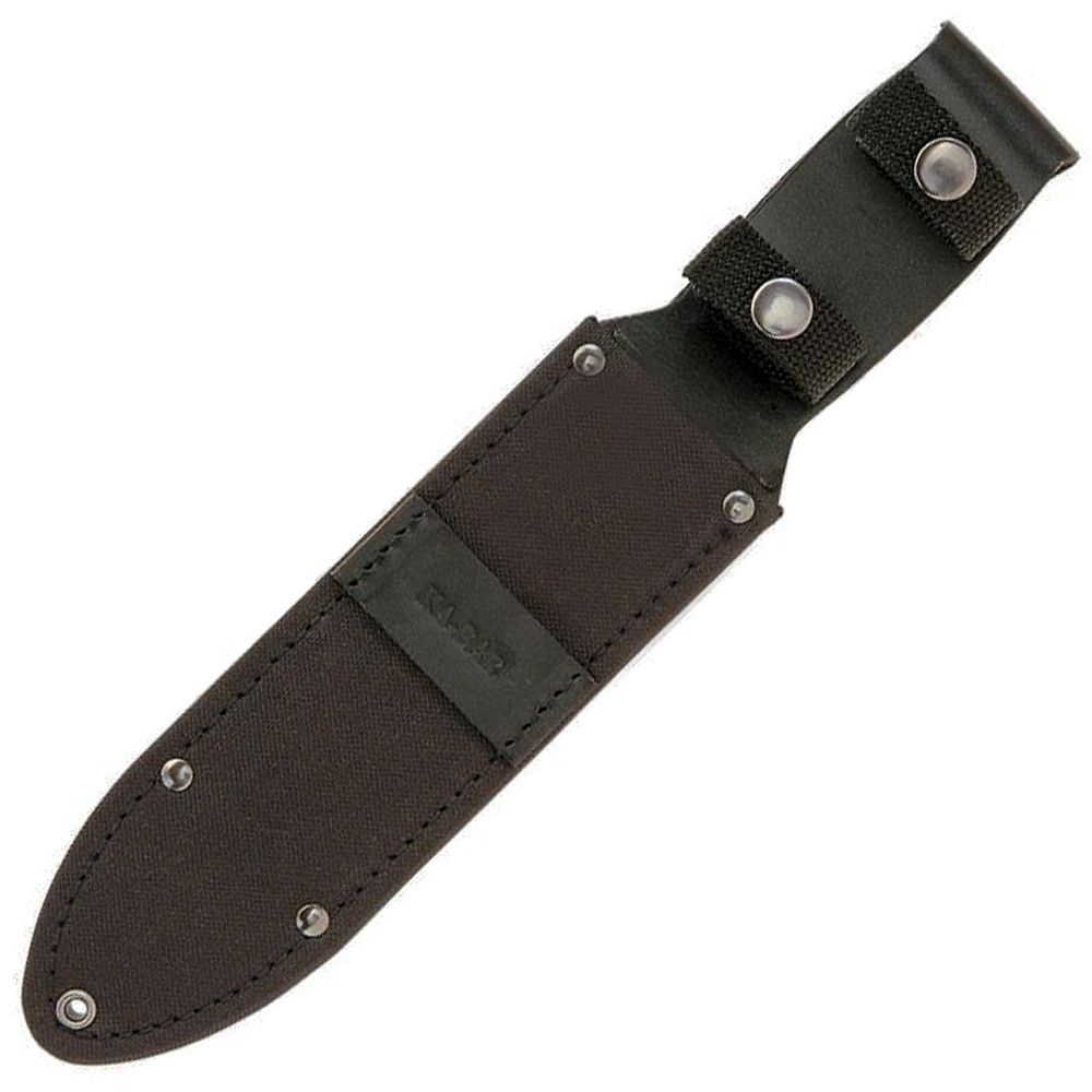 The 1.5" wide blade of this fighting/utility knife gives it extra strength for performing those heavy duty tasks. A partially serrated edge makes cutting looped and synthetic materials a breeze. Tang stamped USA. Leather/Cordura sheath included.